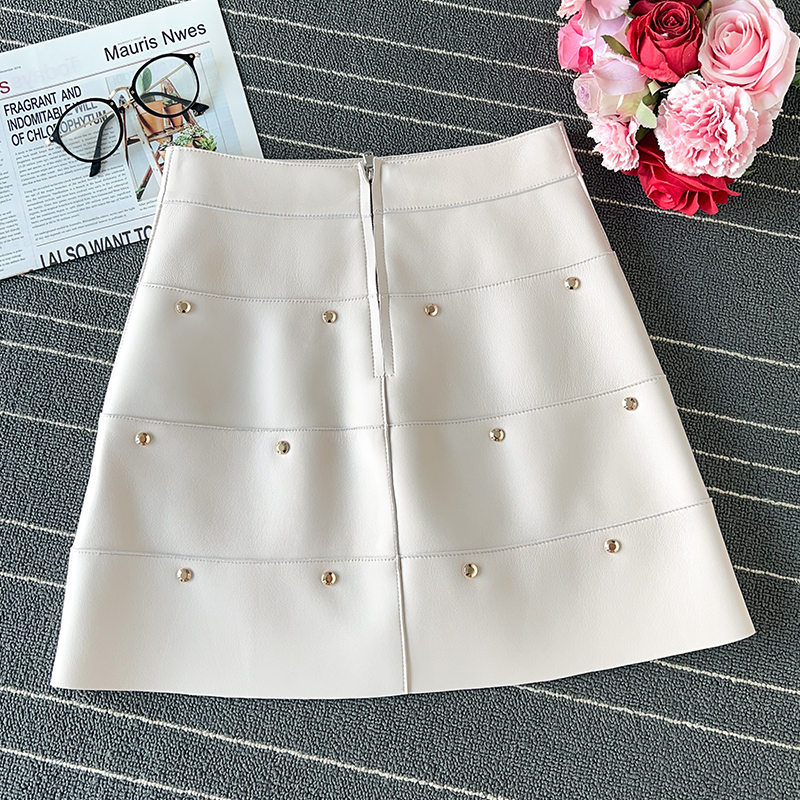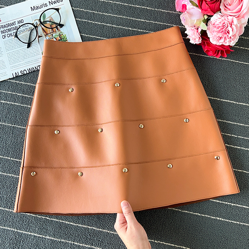 真皮小羊皮2025新款女士包臀短裙高腰百搭铆钉半身裙a字裙小皮裙