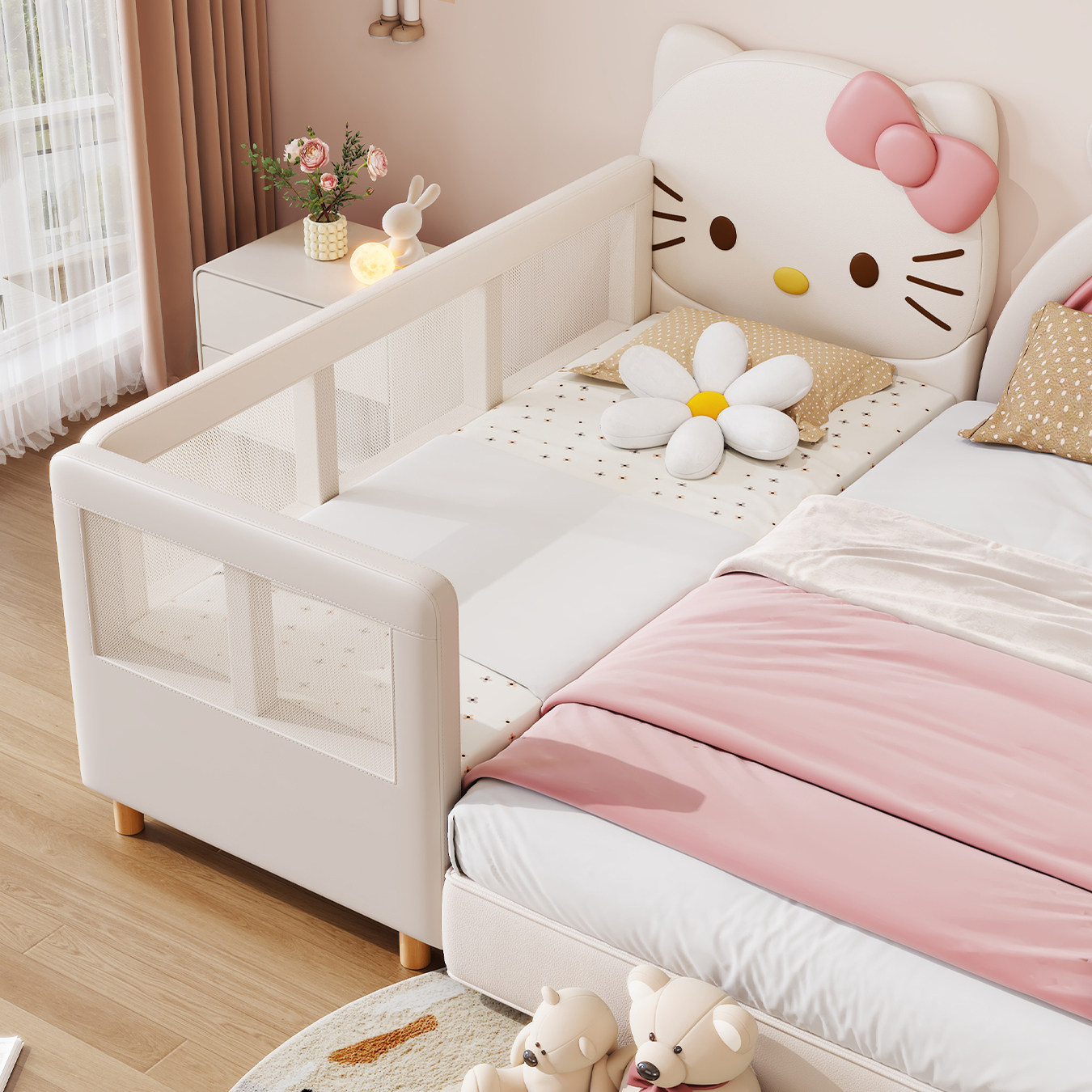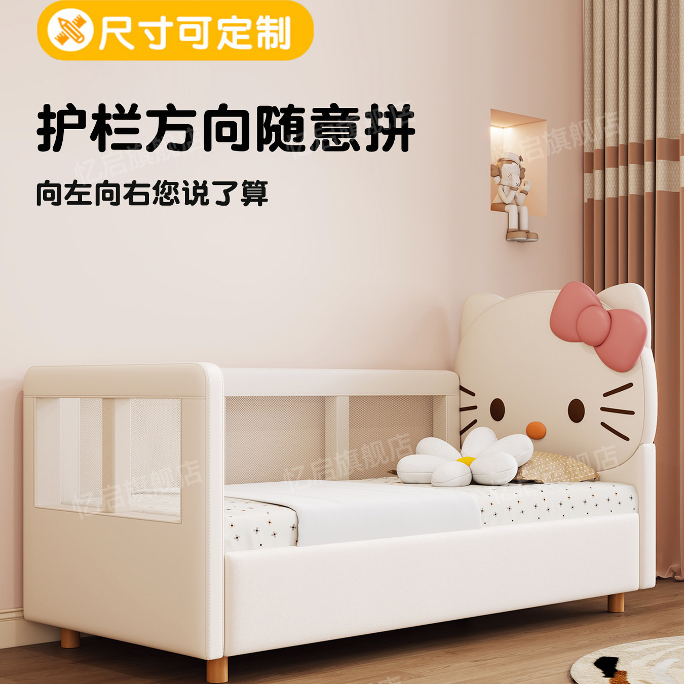 凯蒂猫软包拼接床实木