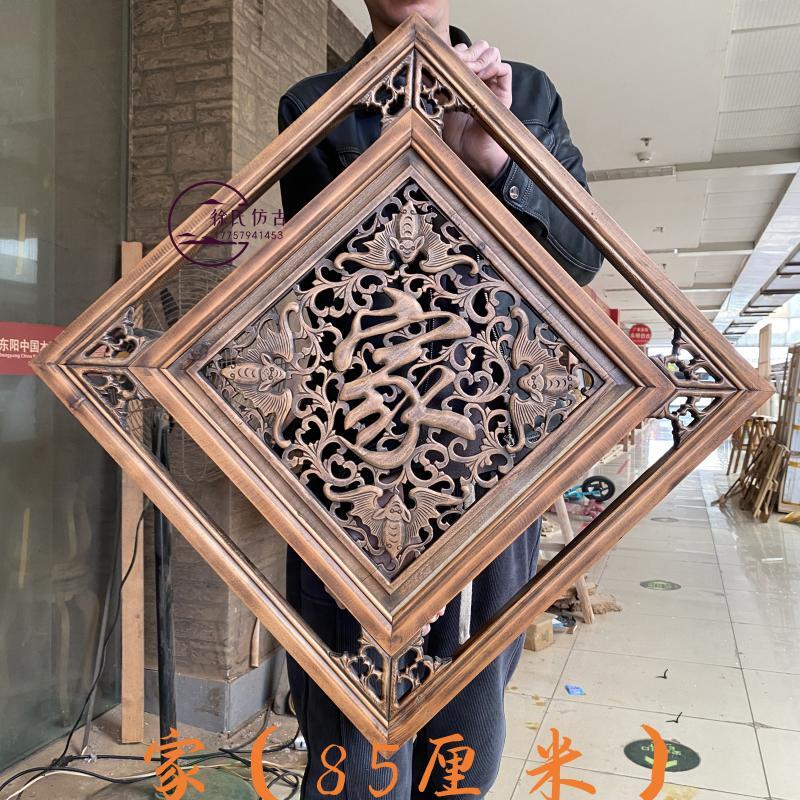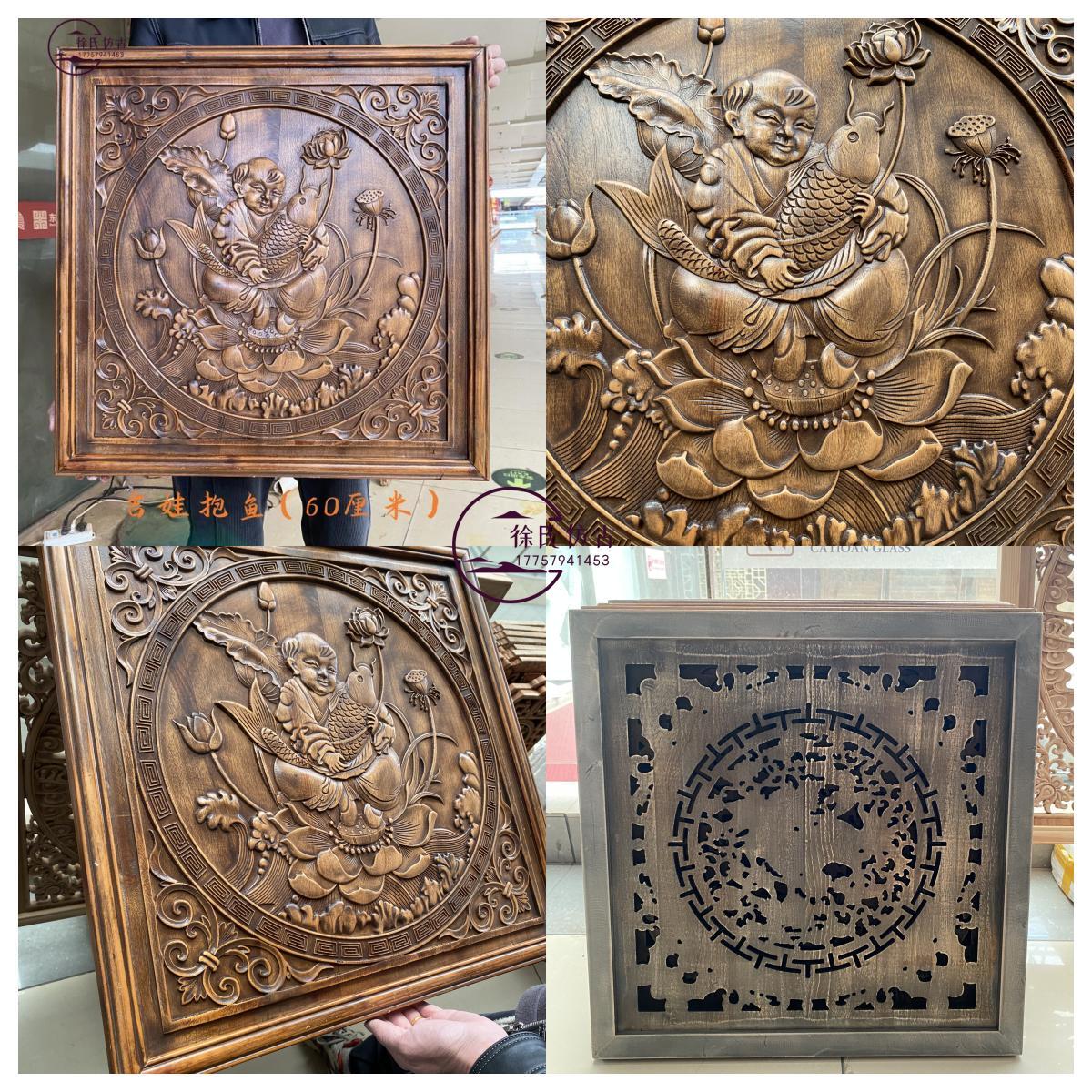 东阳木雕挂件福字香樟木镂空雕刻中式壁挂 仿古实木雕花正方形鱼