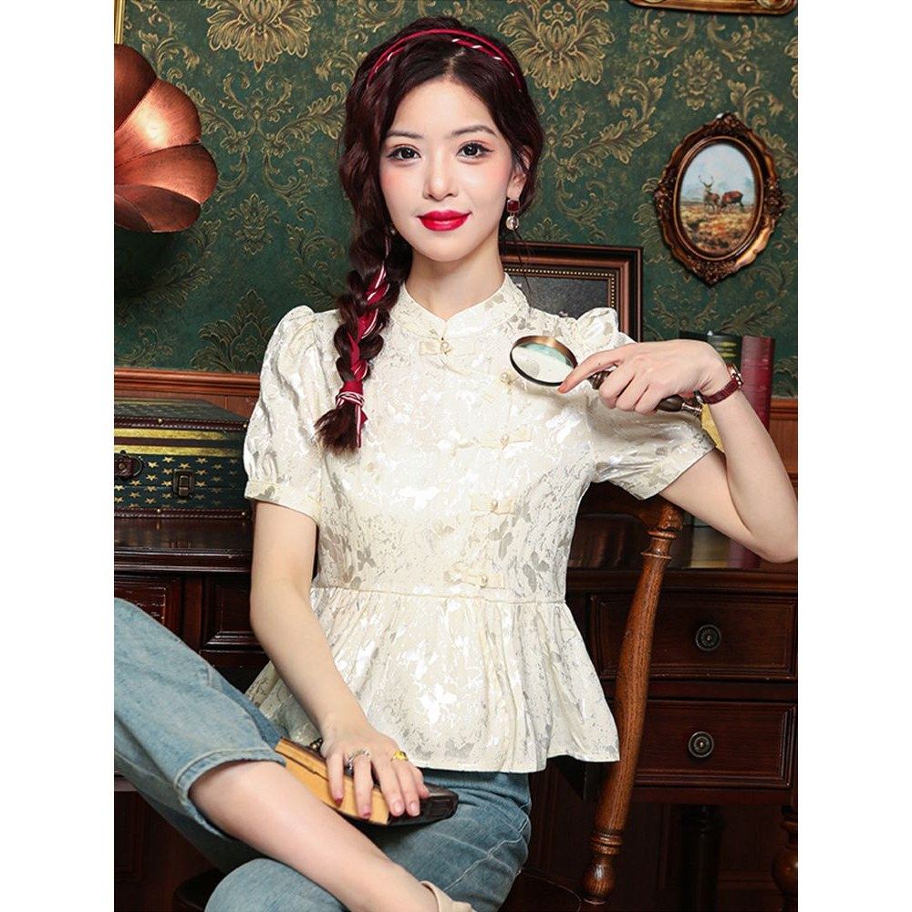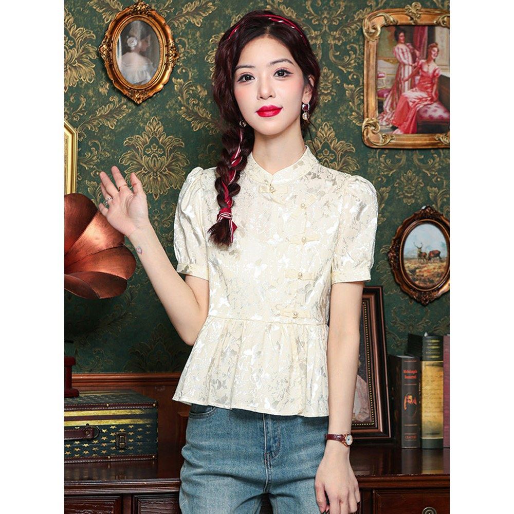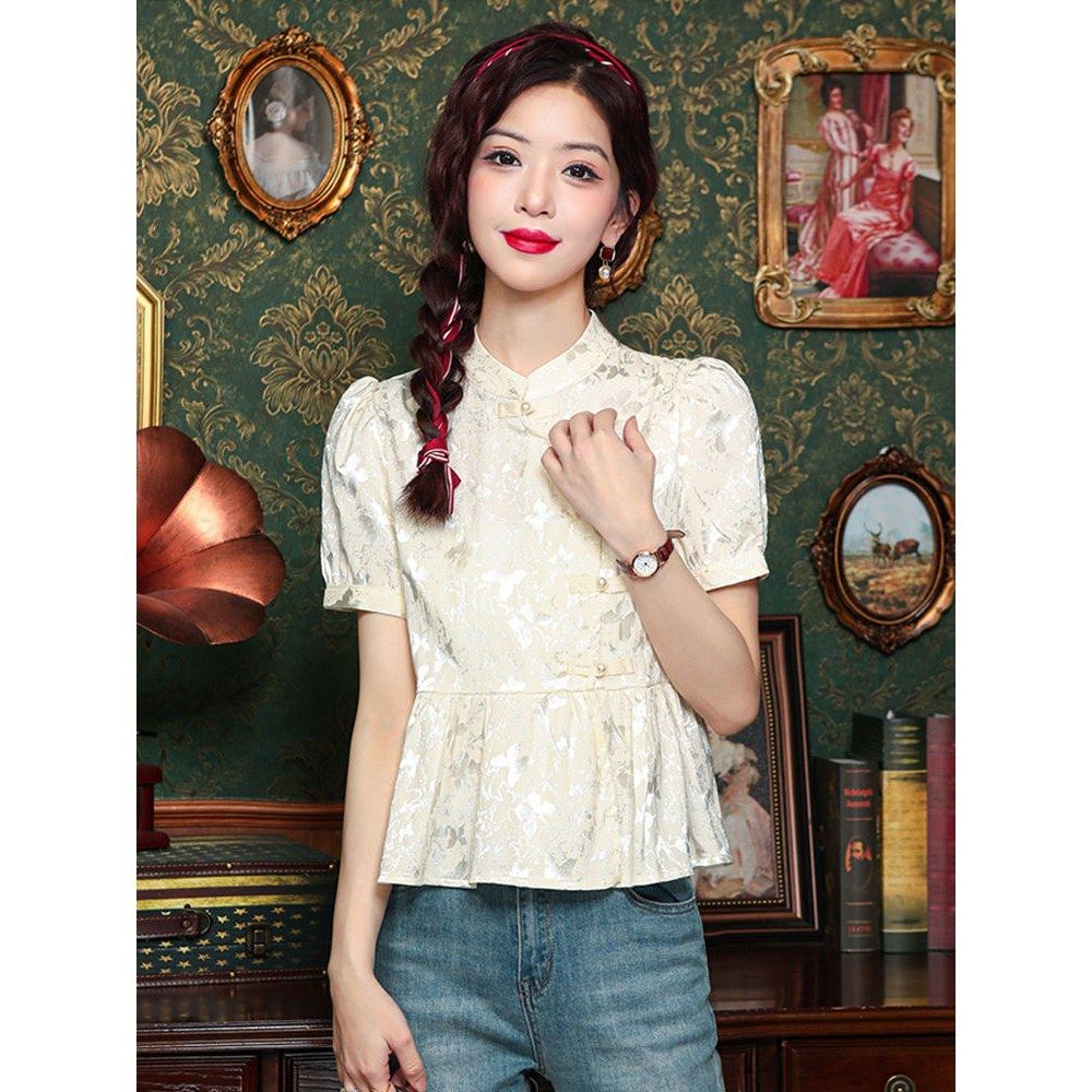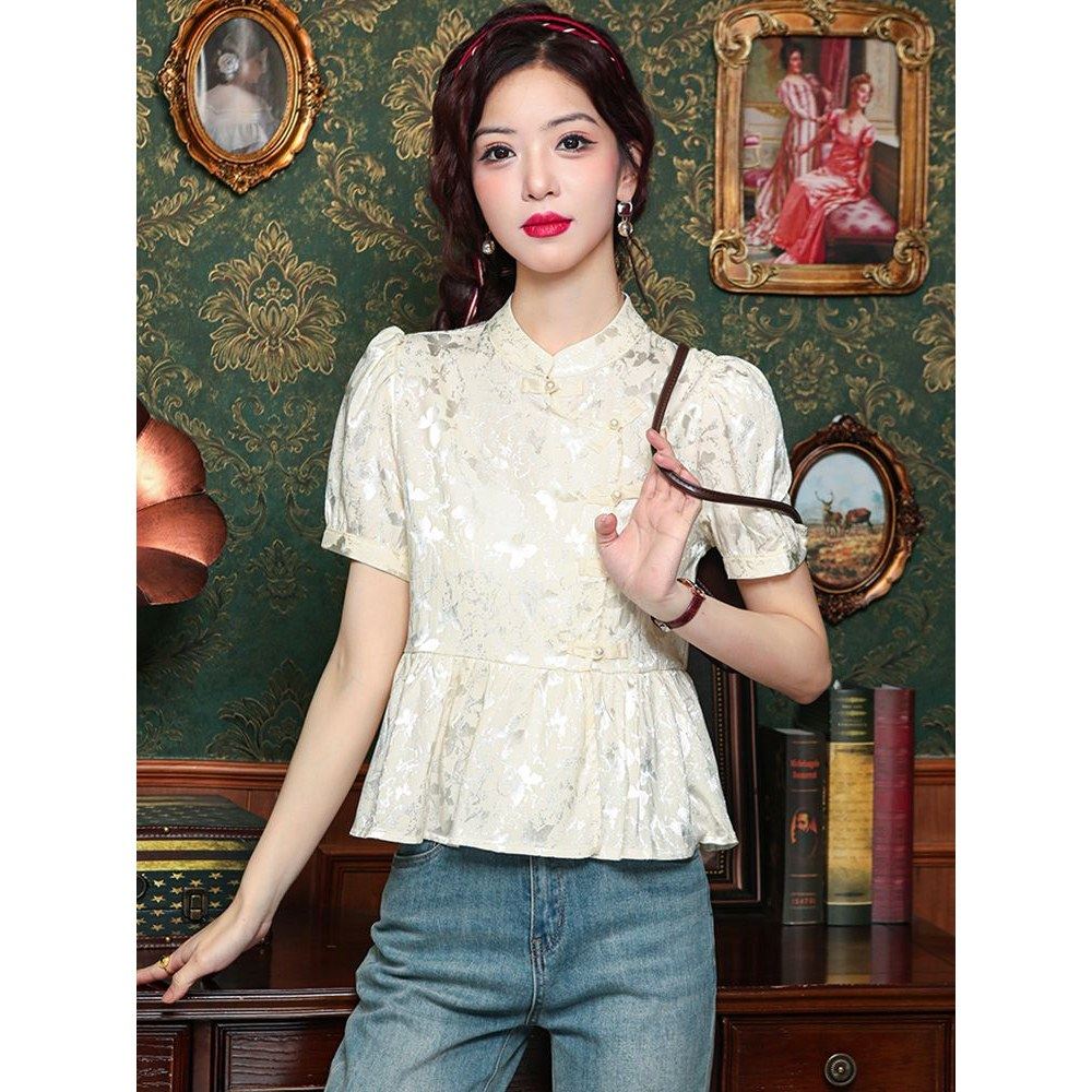 新中式国风短袖t恤女夏季薄款2025新款时尚洋气收腰雪纺衫上衣女