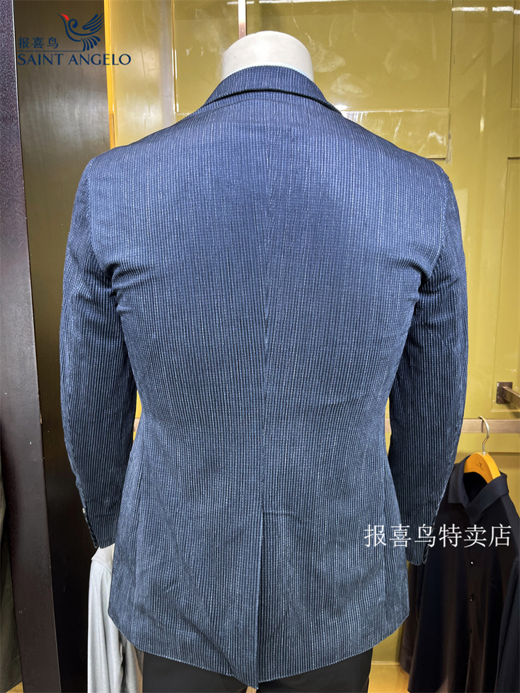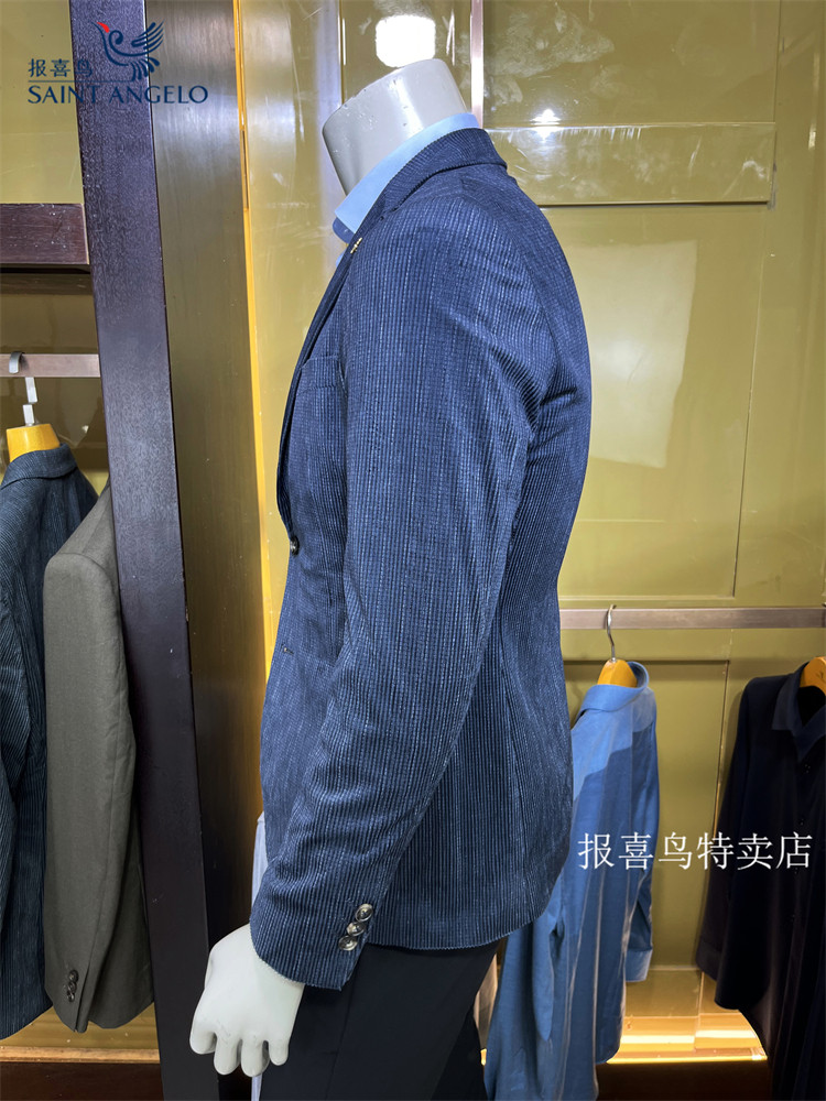 报喜鸟24年秋季新款深蓝灯芯绒高端商务休闲男士修身单西服便西装