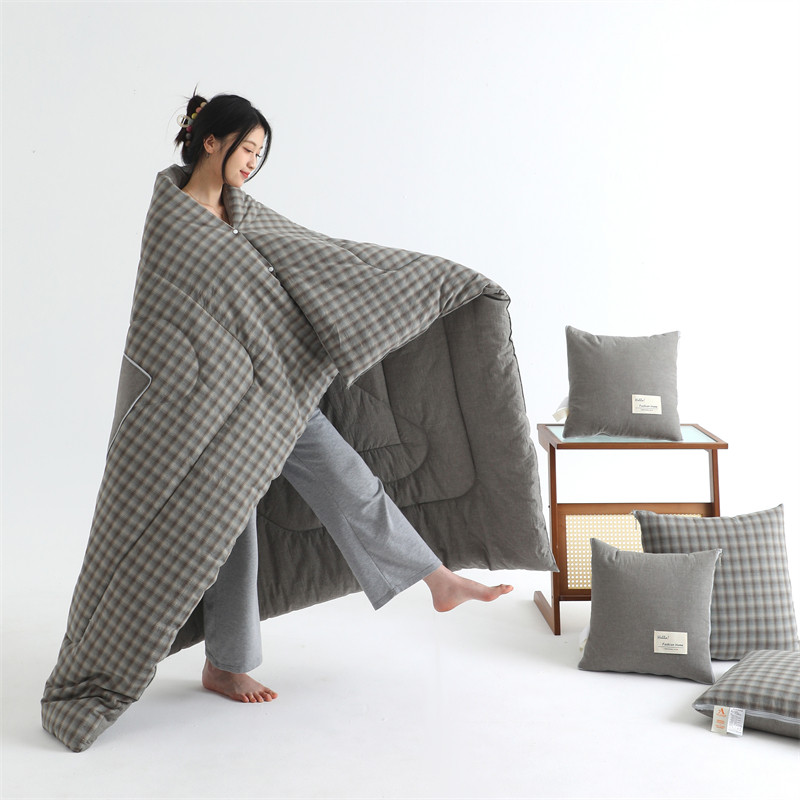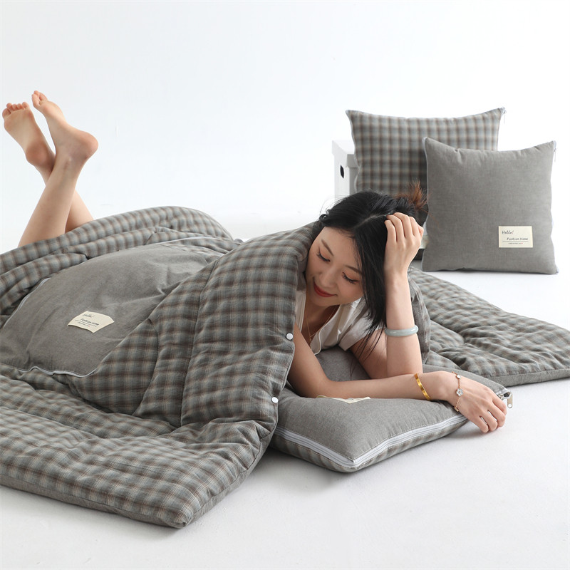 a类母婴级 全棉加厚抱枕被子两用二合一午睡毯子多功能车用懒人被