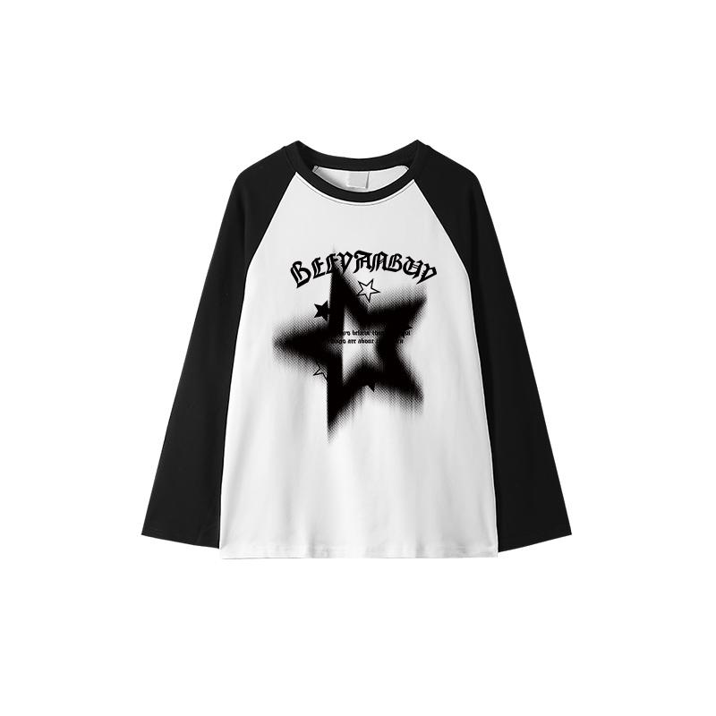 拼接插肩五角星潮牌秋冬季中长款宽松纯棉胖MM小众大码上衣女美式