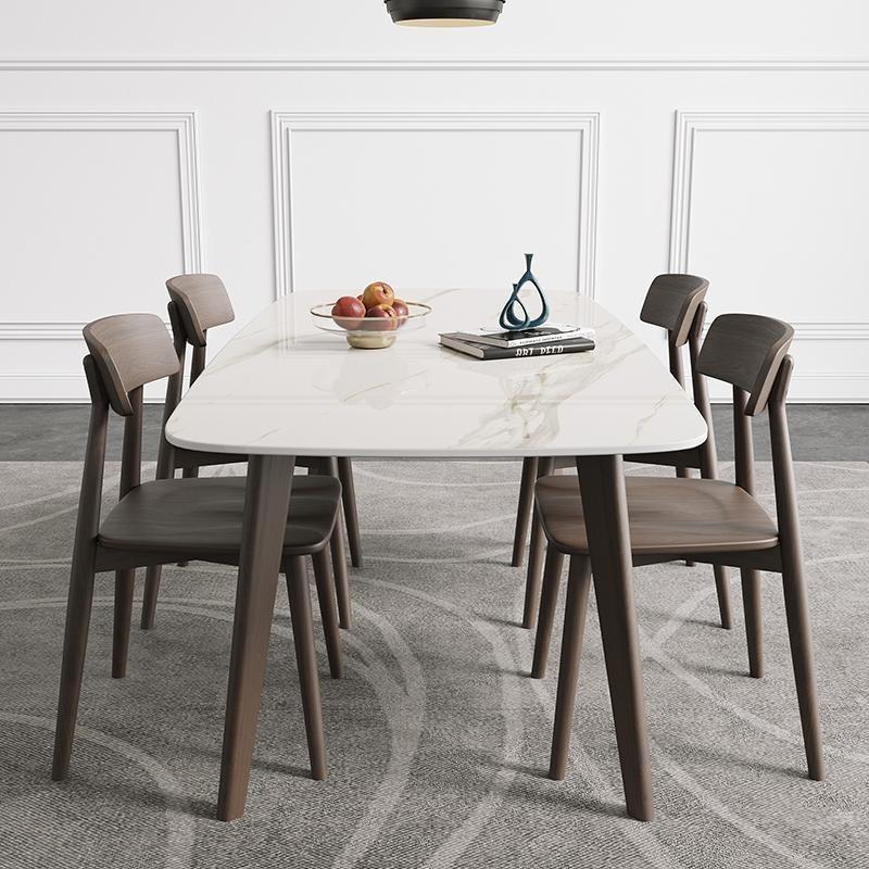 北欧风意式岩板实木餐桌椅组合现代简约家用小户型长方形吃饭桌子