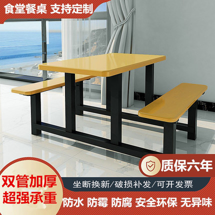 食堂餐桌椅组合玻璃钢学校学生连体快餐厅餐桌饭堂不锈钢加厚桌椅