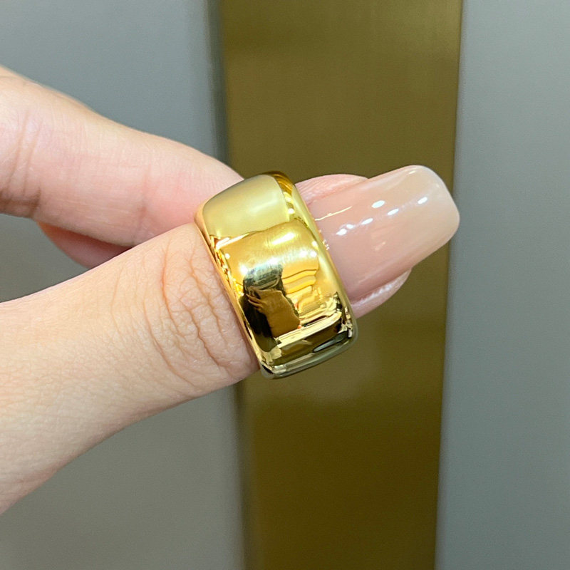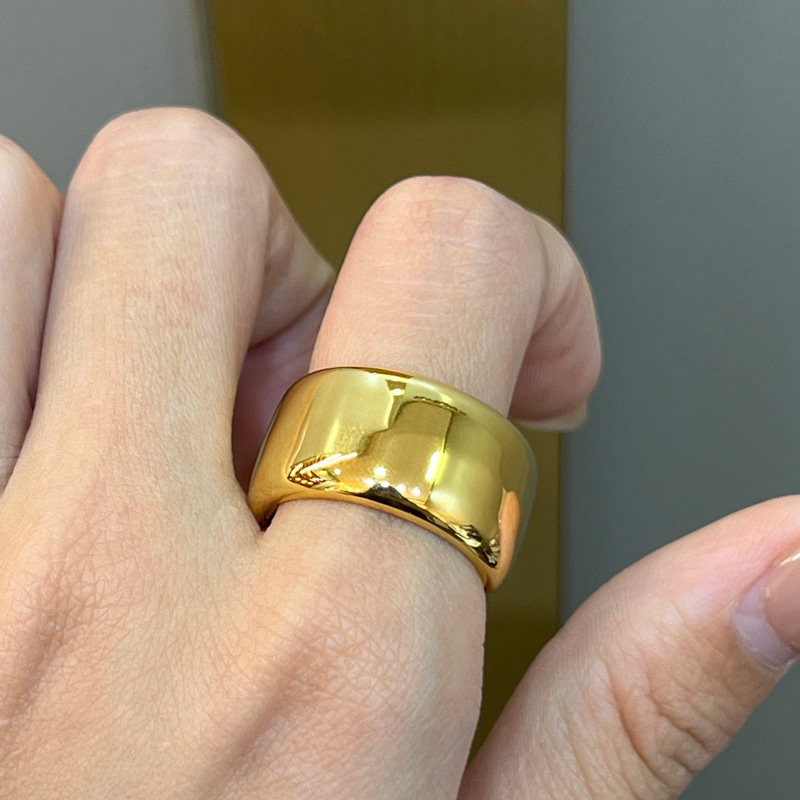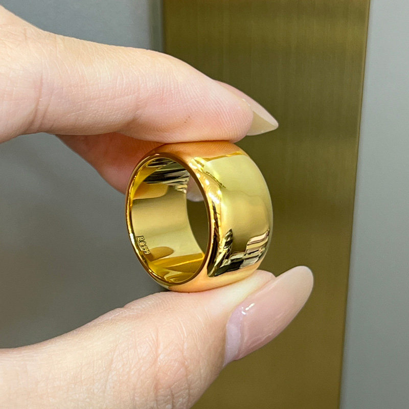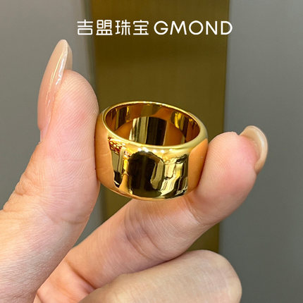 吉盟珠宝亮面轮胎黄金戒指男999足金宽版固口老板大指环简约大气