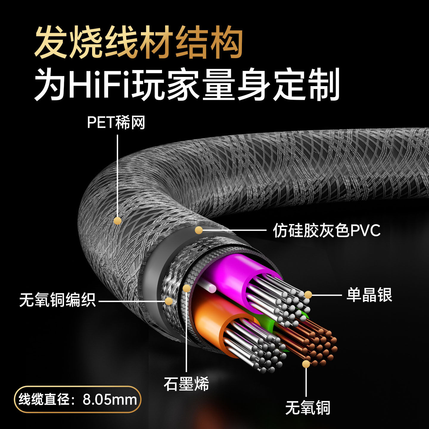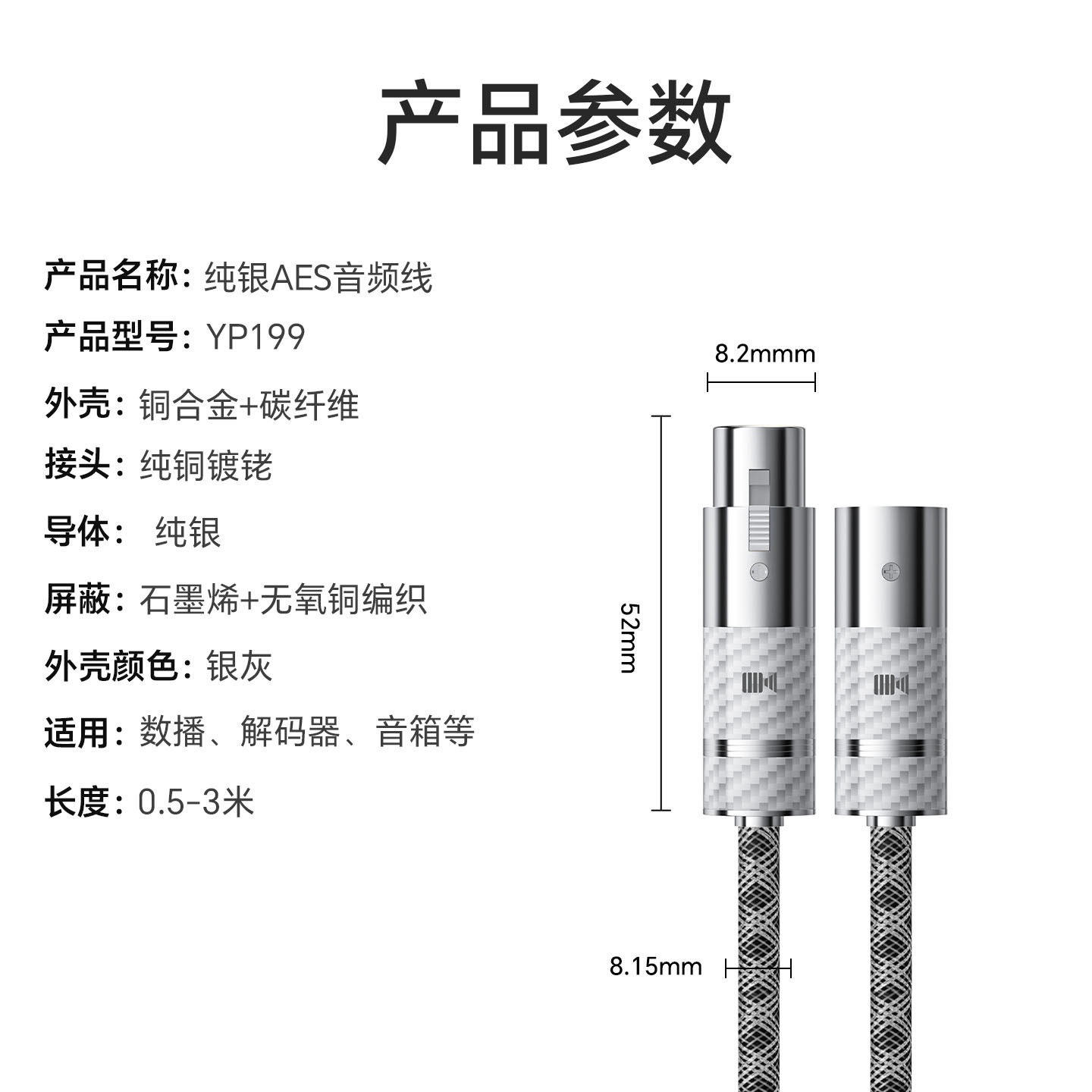 开博尔6N纯银AES数字音频线110欧EBU发烧信号线前后级数播功放线