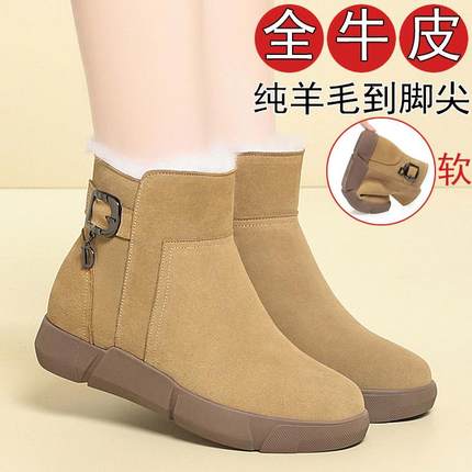 真皮雪地靴女加绒加厚平底冬季羊毛棉鞋防滑惠州马丁靴女大码短靴
