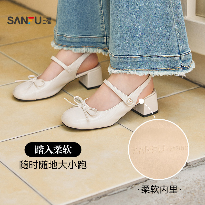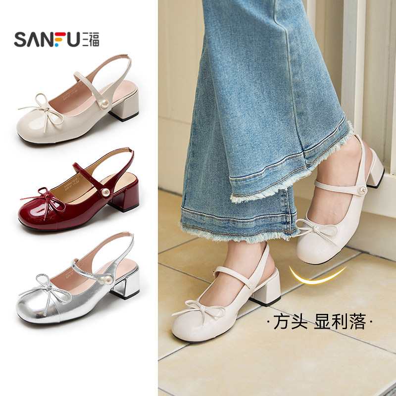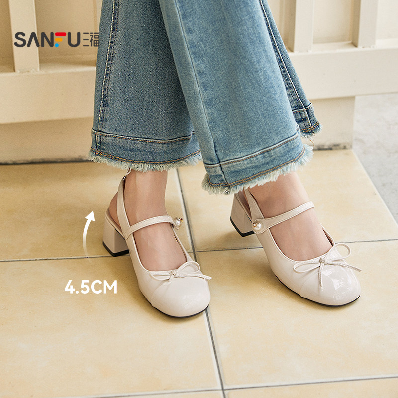 三福鞋子女单鞋夏季简约玛德琳千金风高跟方头时尚淑女鞋840854
