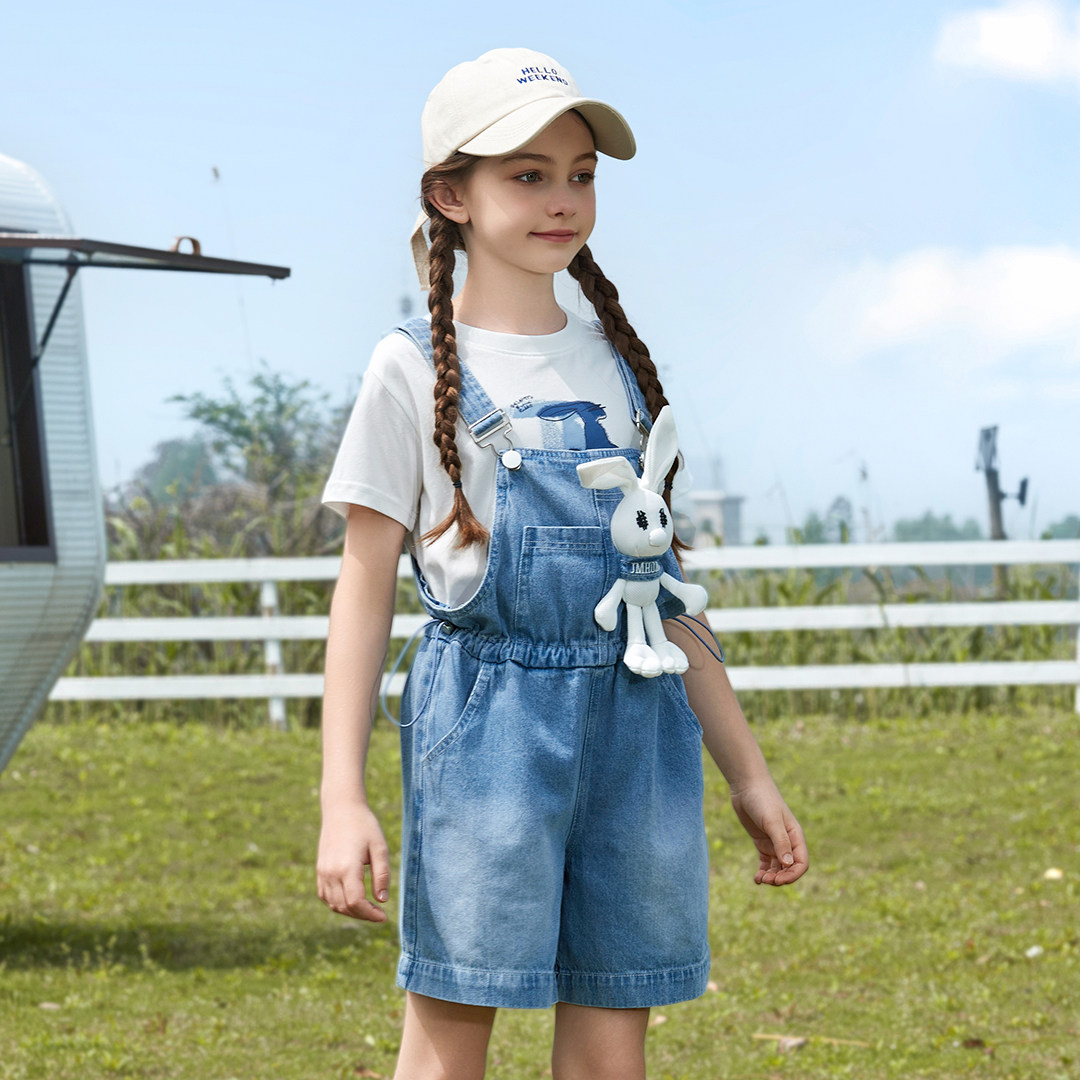 童装女童背带裤中大童牛仔短裤儿童棉裤子2025夏装新款童装