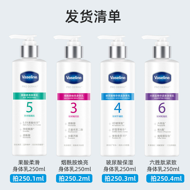 Vaseline/凡士林身体乳3456号果酸烟酰胺玻尿酸六胜肽正品250ml