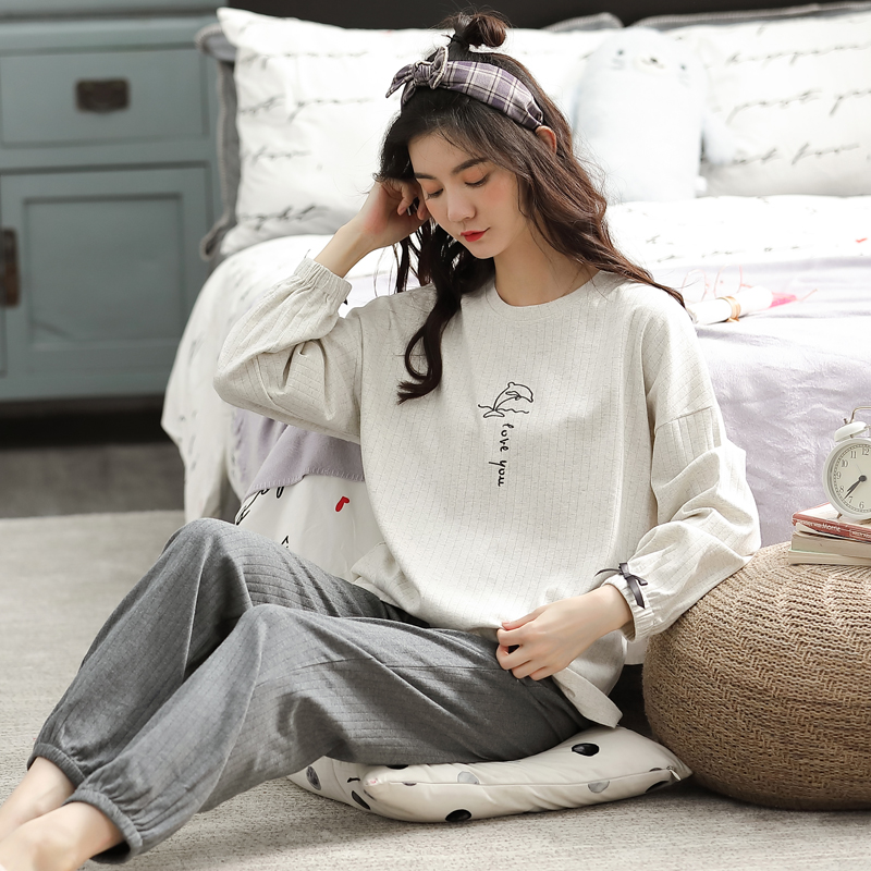 女士春秋款长袖纯棉可外穿家居服