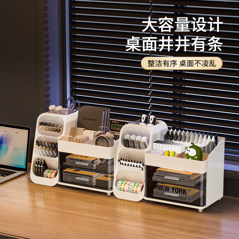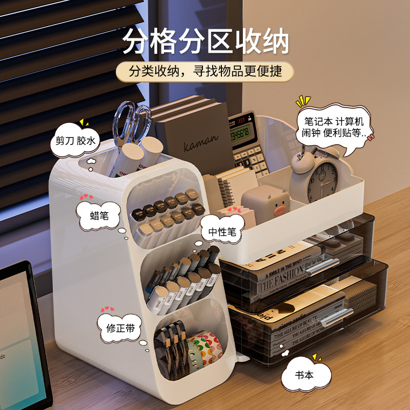 桌面收纳盒学生宿舍抽屉式斜插文具笔筒书本收纳神器办公桌置物架