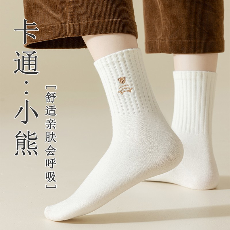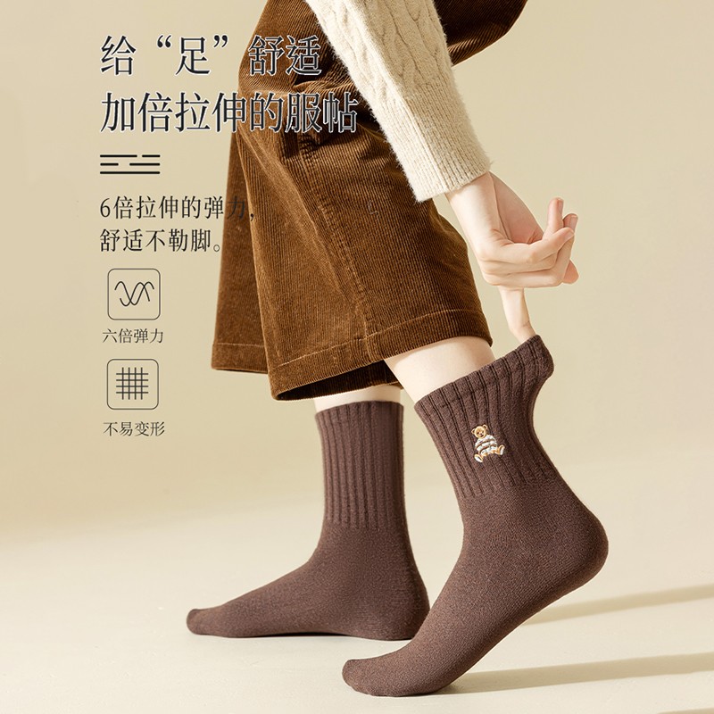 TUCANO纯棉防臭袜子女士中筒秋冬季可爱学生女袜全棉加厚透气