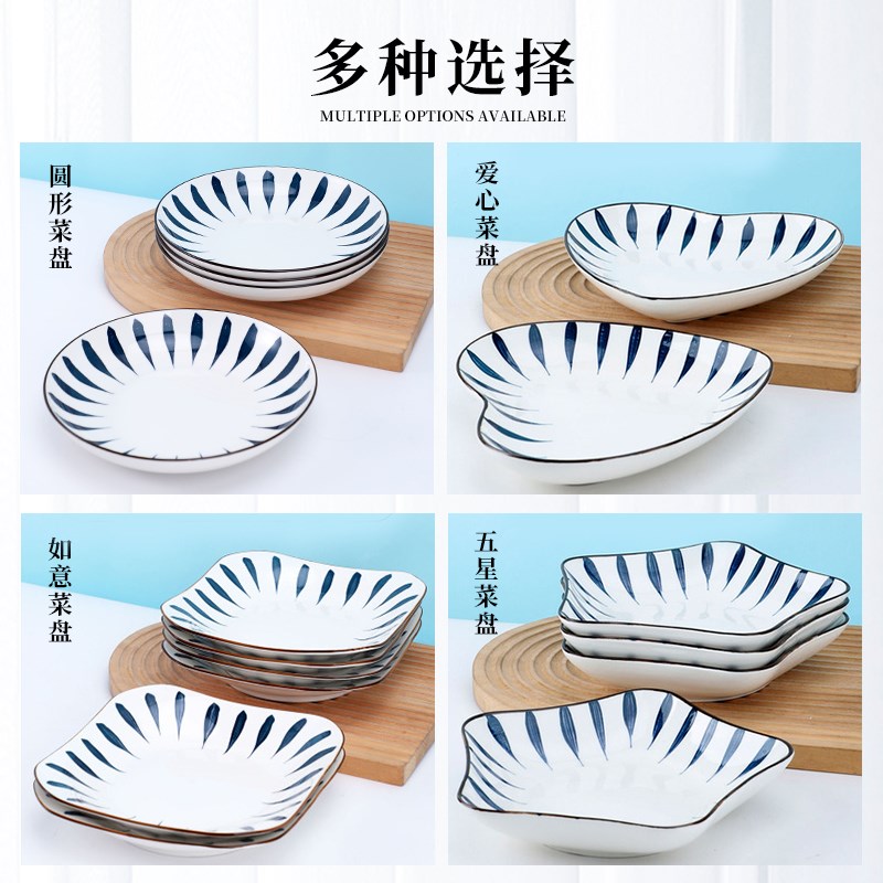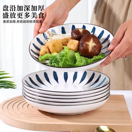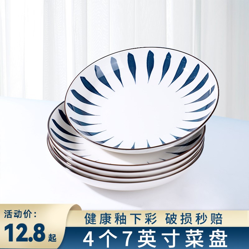日式创意家用陶瓷菜盘子碟子深盘汤盘4个装吃饭盘子方盘餐具套装