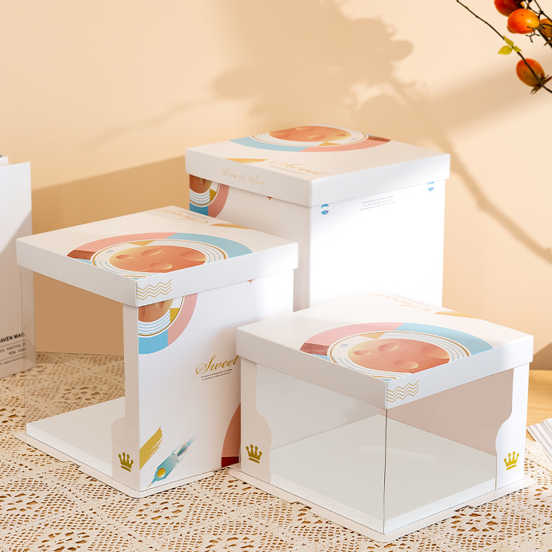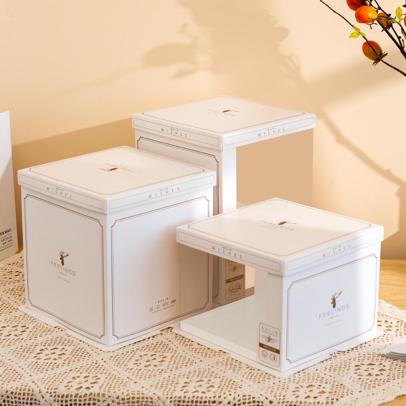 新款半透明生日蛋糕盒子包装盒6/8/10/12寸单双层加高蛋糕盒定制