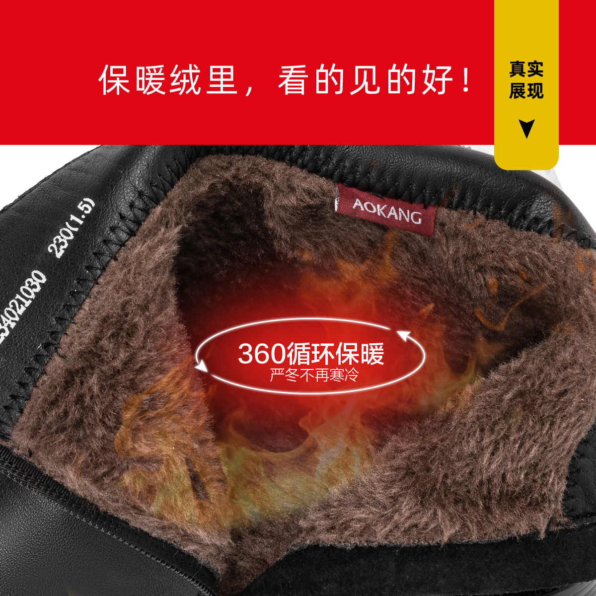 【真皮+加厚绒毛】奥康女鞋 冬新款加绒透气妈妈鞋防滑保暖时装靴