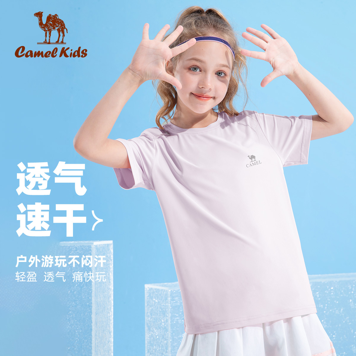 骆驼儿童圆领短袖男女童防晒速干衣服中大童休闲纯色百搭童装T恤