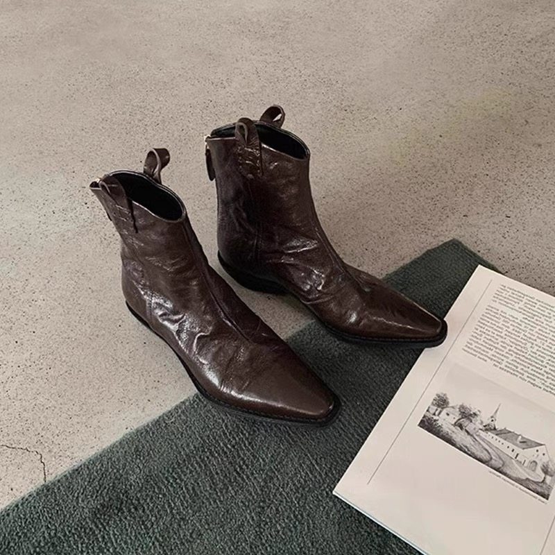 大码女靴41到43尖头V口西部靴小码马丁靴女313233瘦瘦靴真皮短靴