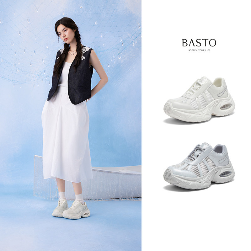 百思图2025秋季新款商场同款时尚厚底增高老爹鞋女休闲鞋B1883CM5