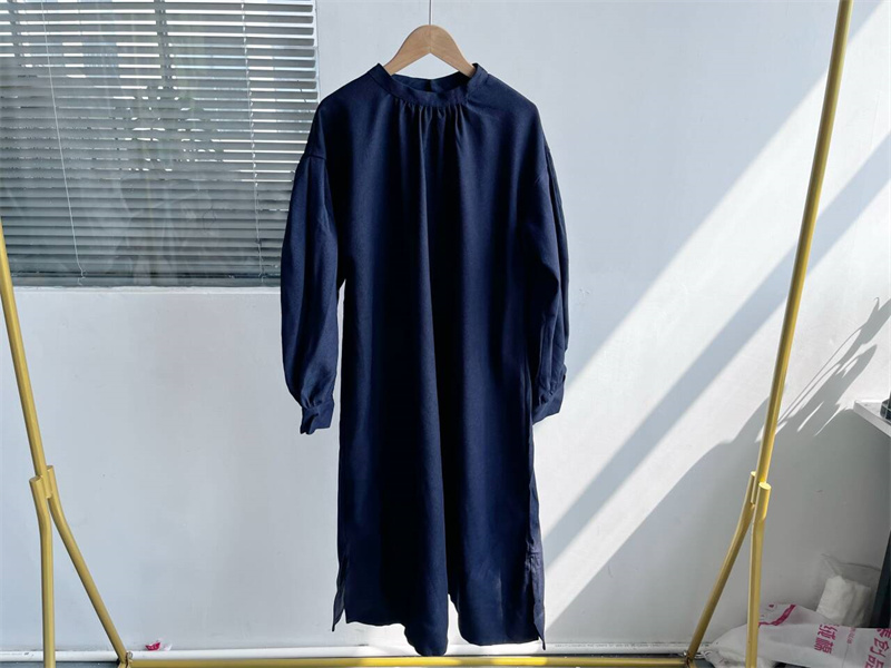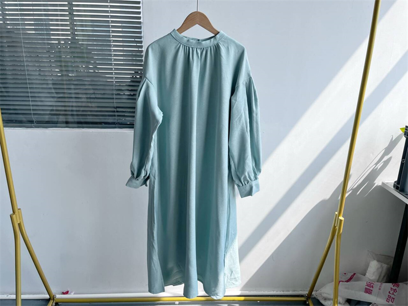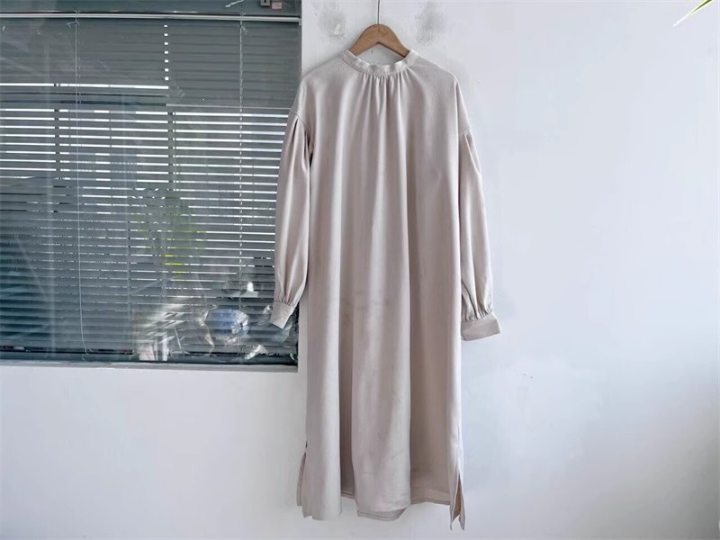 微瑕春夏新款纯色简约长袖开叉小众设计款连衣裙宽松显瘦长裙C1