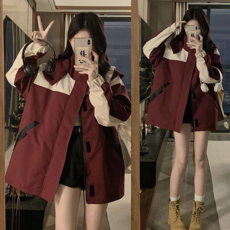 爆款外套女2025春装新款爆款加厚宽松夹克中长款风衣连帽冲锋衣潮
