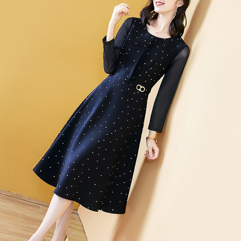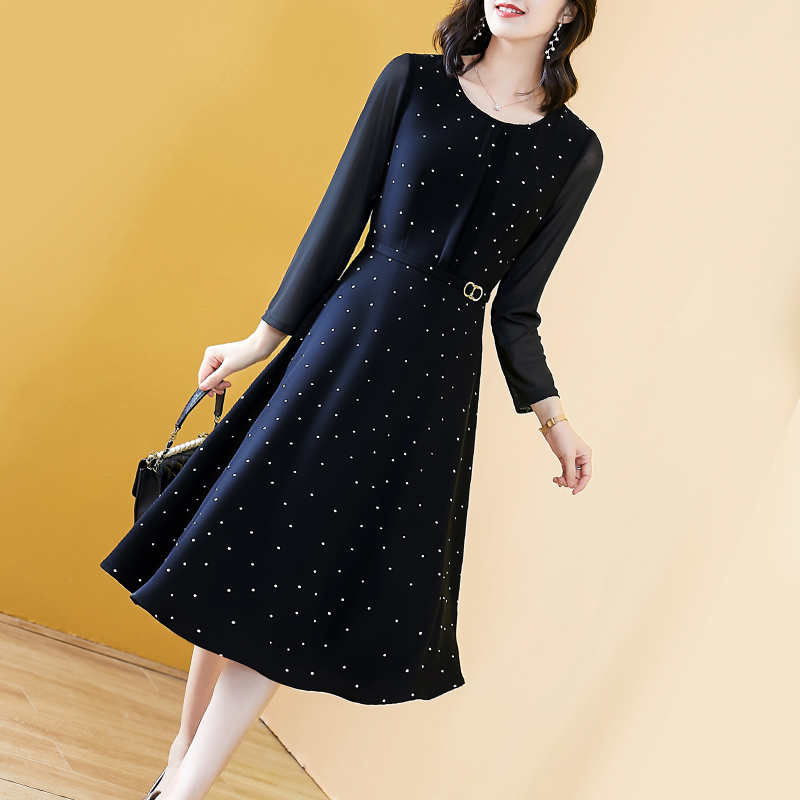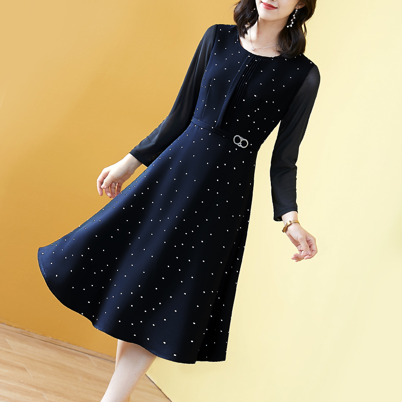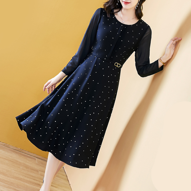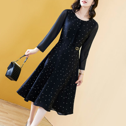 春款连衣裙2025新款女洋气显瘦长袖黑色波点气质中老漂亮妈妈高档