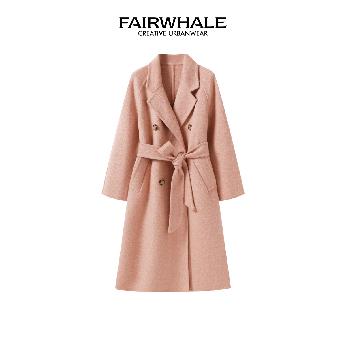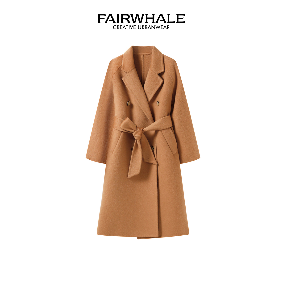 马克华菲绵羊毛双排扣西装领大衣秋冬时尚休闲百搭长袖中长款外套
