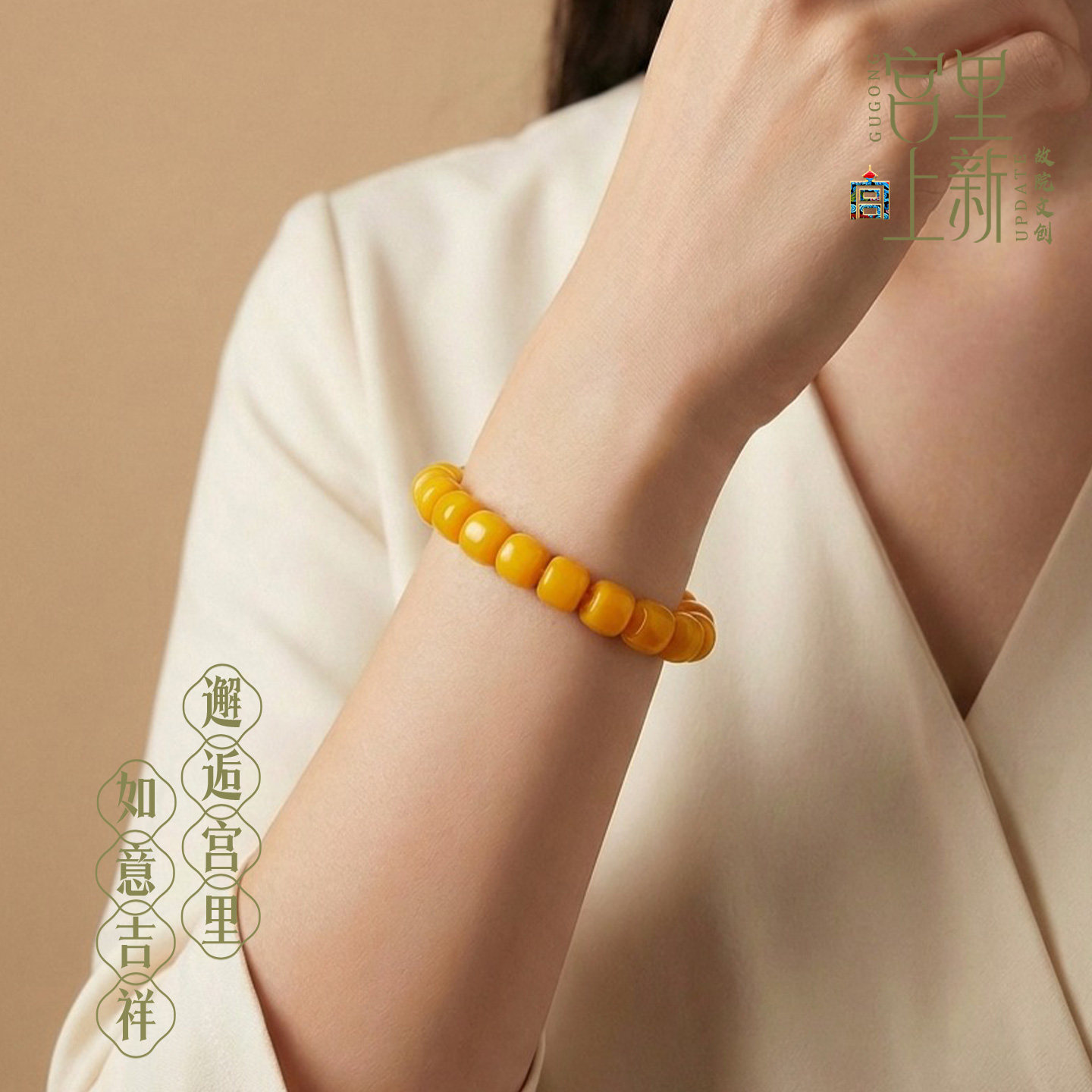 宫里上新蜜蜡手串女款天然正品琥珀鸡油黄手链男生散珠生日礼物