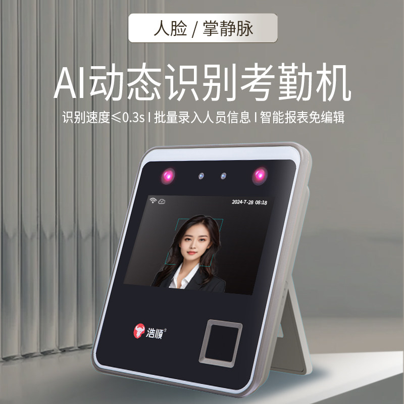 浩顺人脸打卡机K6指纹云考勤面部识别多地签到公司员工上下班智能卡机动态可见光刷脸指纹识别考勤机门禁一体