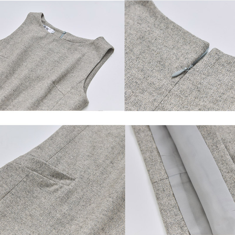 毛呢无袖连衣裙圆领马甲裙