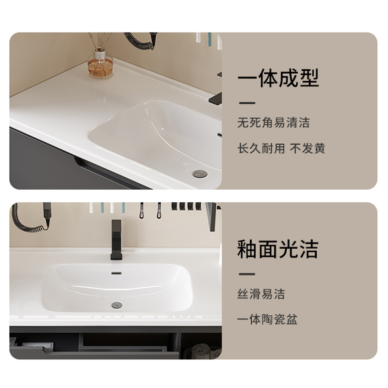 简约现代实木浴室柜陶瓷一体盆卫生间收纳柜洗漱台洗脸池盆柜组合
