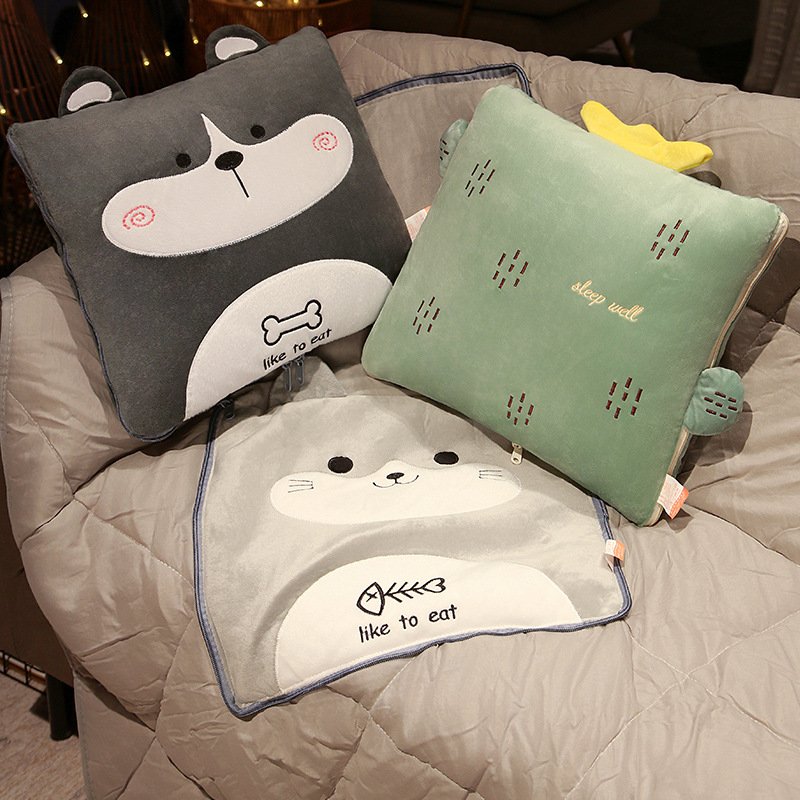 抱枕被子两用冬季办公室午睡毯子枕头二合一汽车沙发载靠垫靠枕