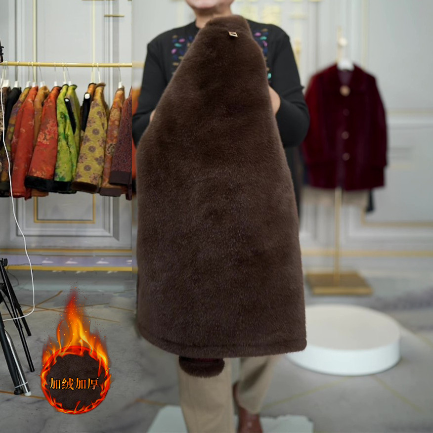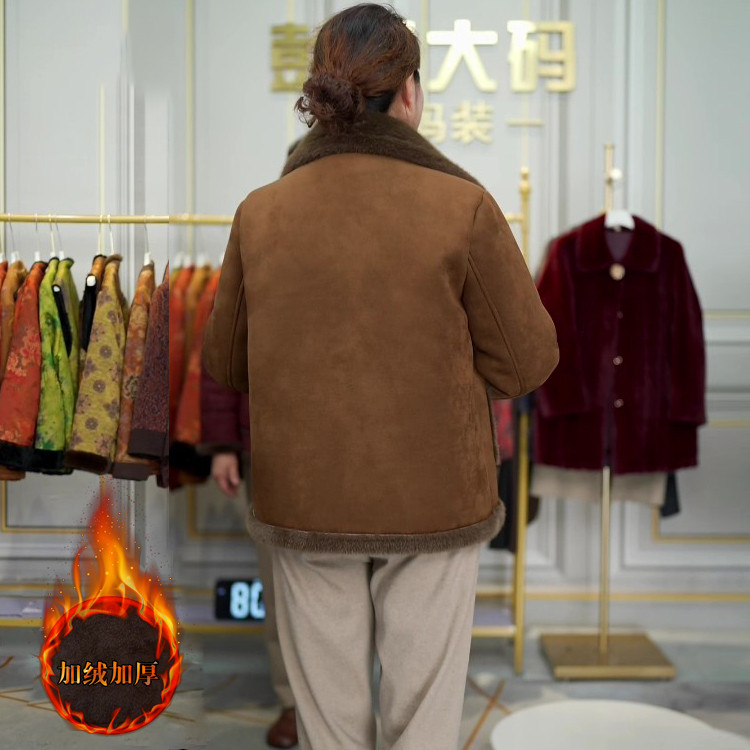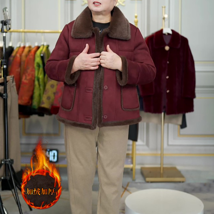妈秋冬加绒加厚外套短款棉服洋气中老年女装小个子皮毛一体大衣