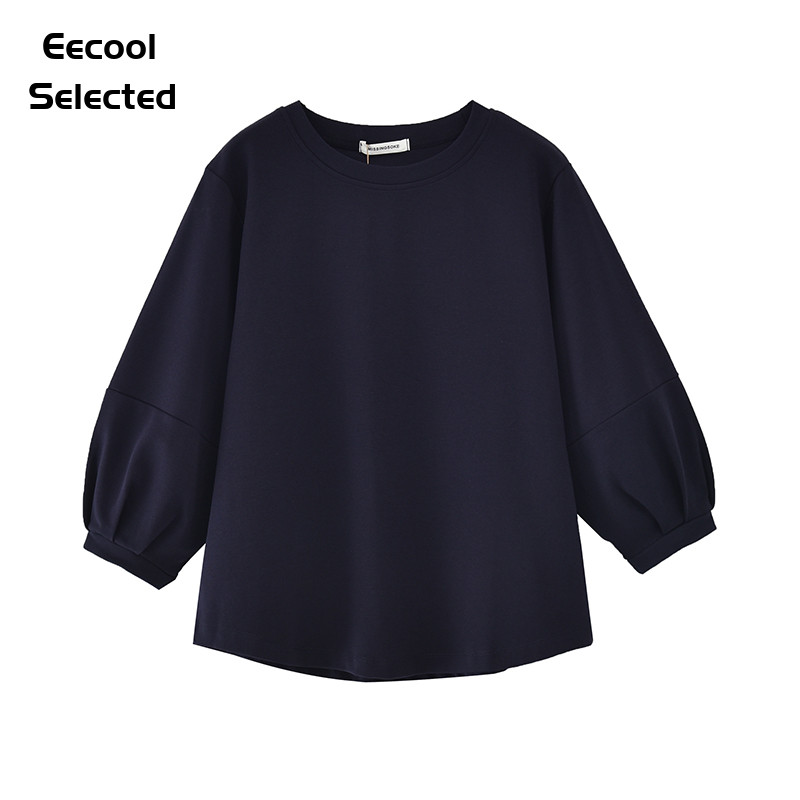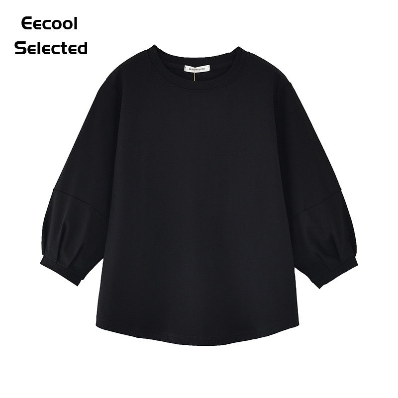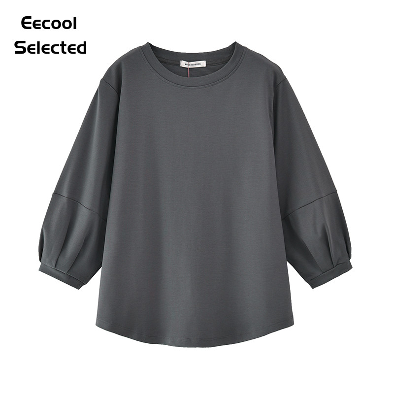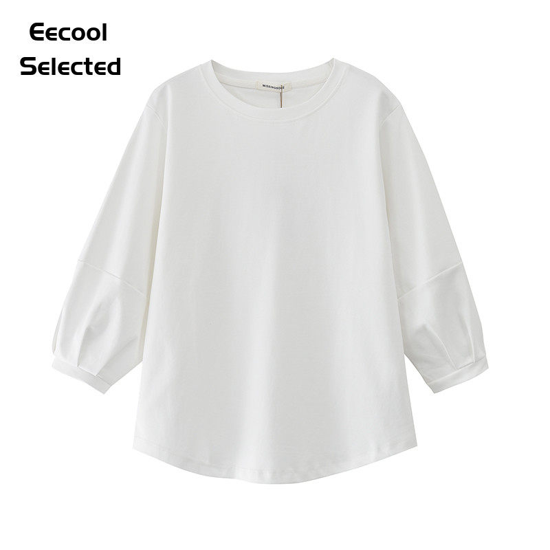 早秋季纯棉七分袖灯笼袖 2025新款T恤高级感打底衫中袖上衣女春秋