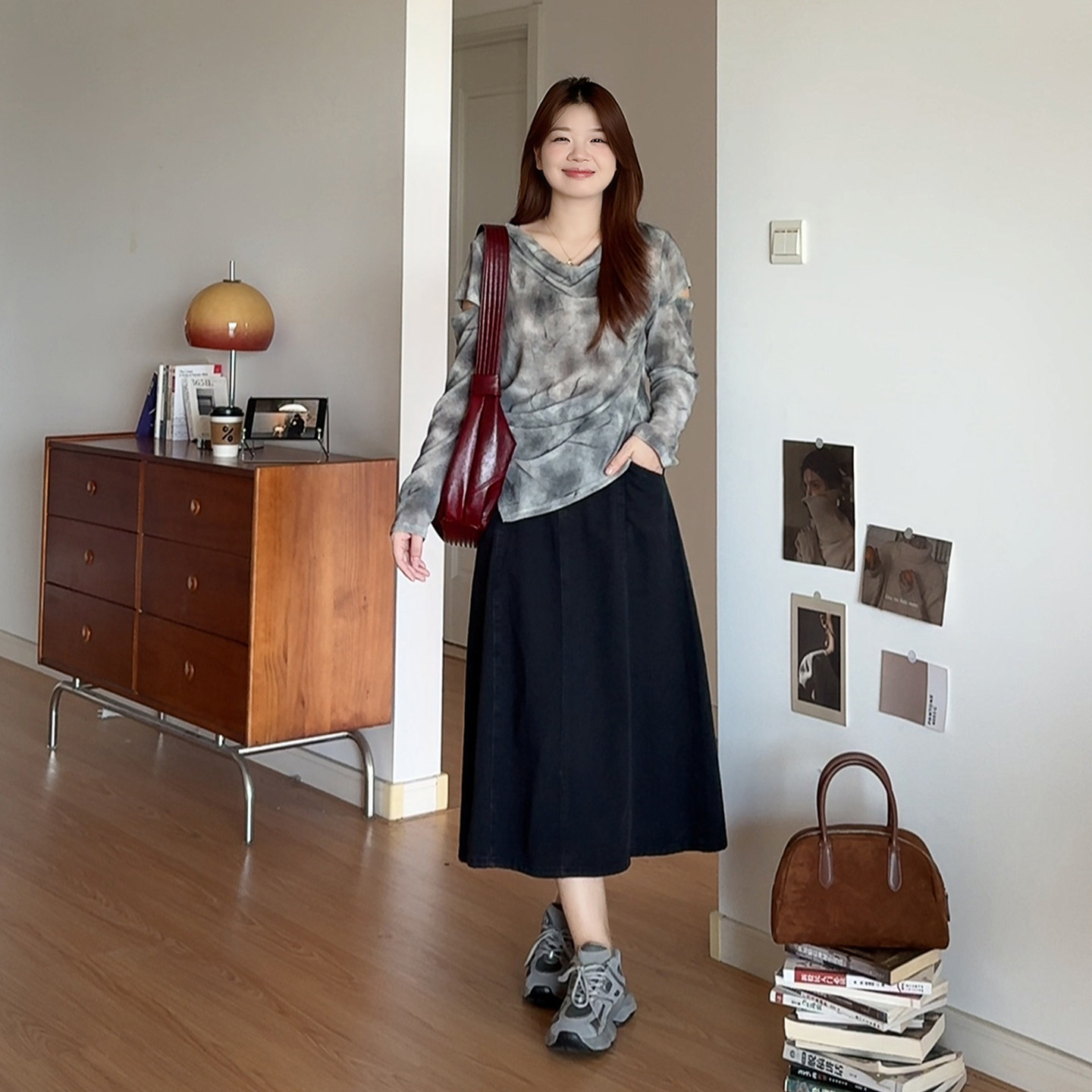 微胖的喵喵 大码女装mm春装宽松显瘦休闲百搭不规则长袖上衣 8202