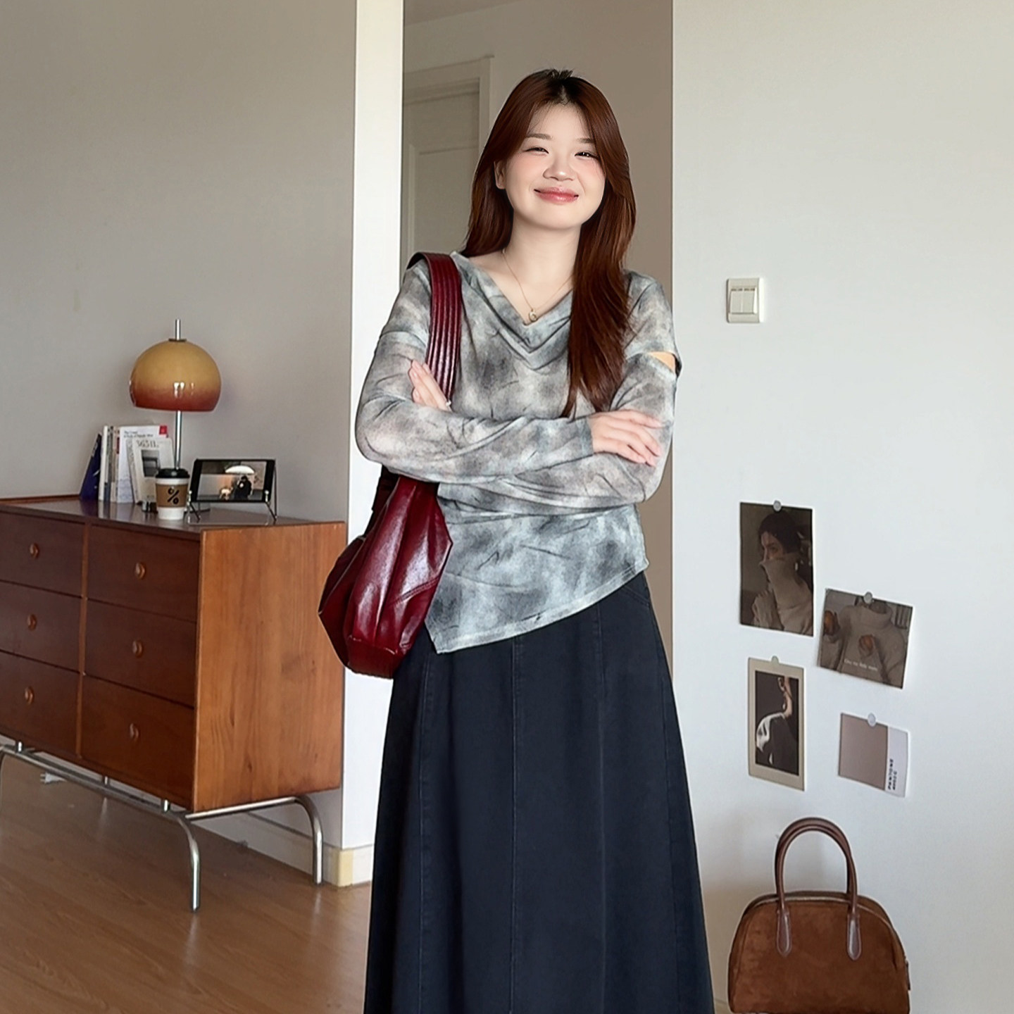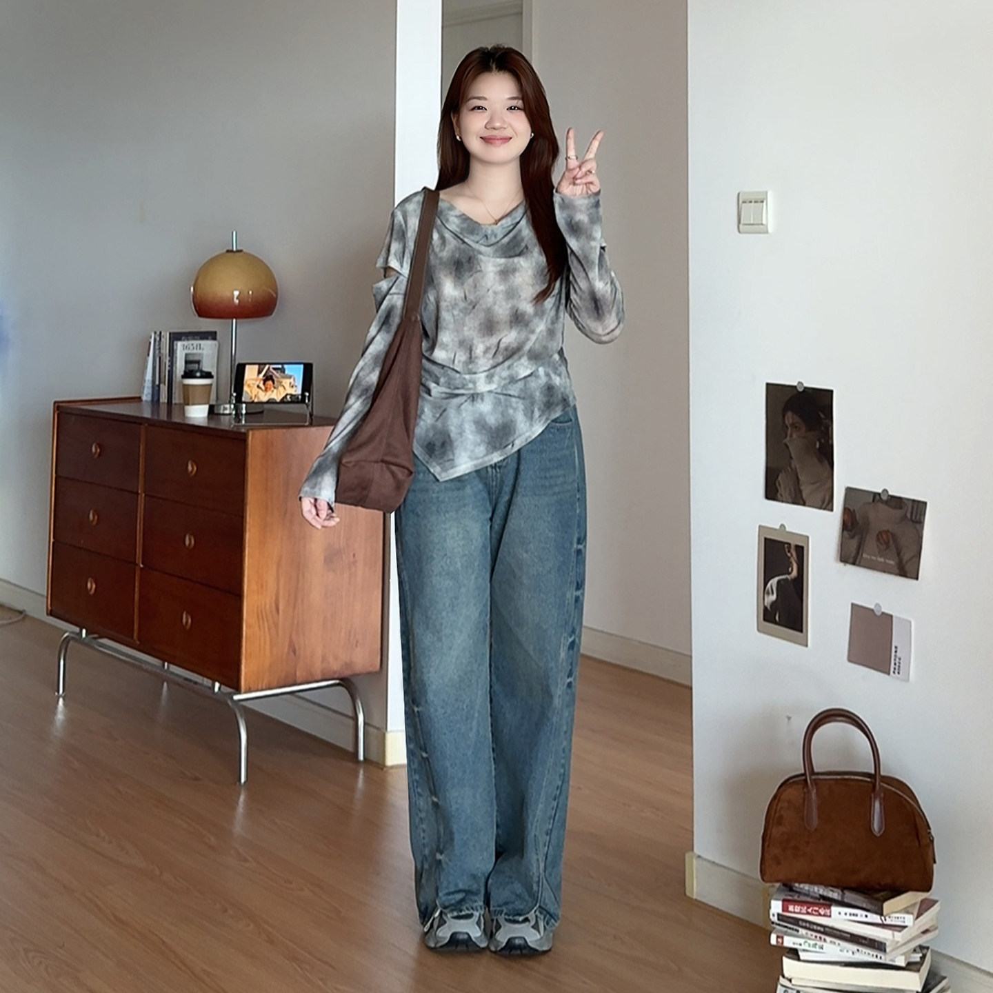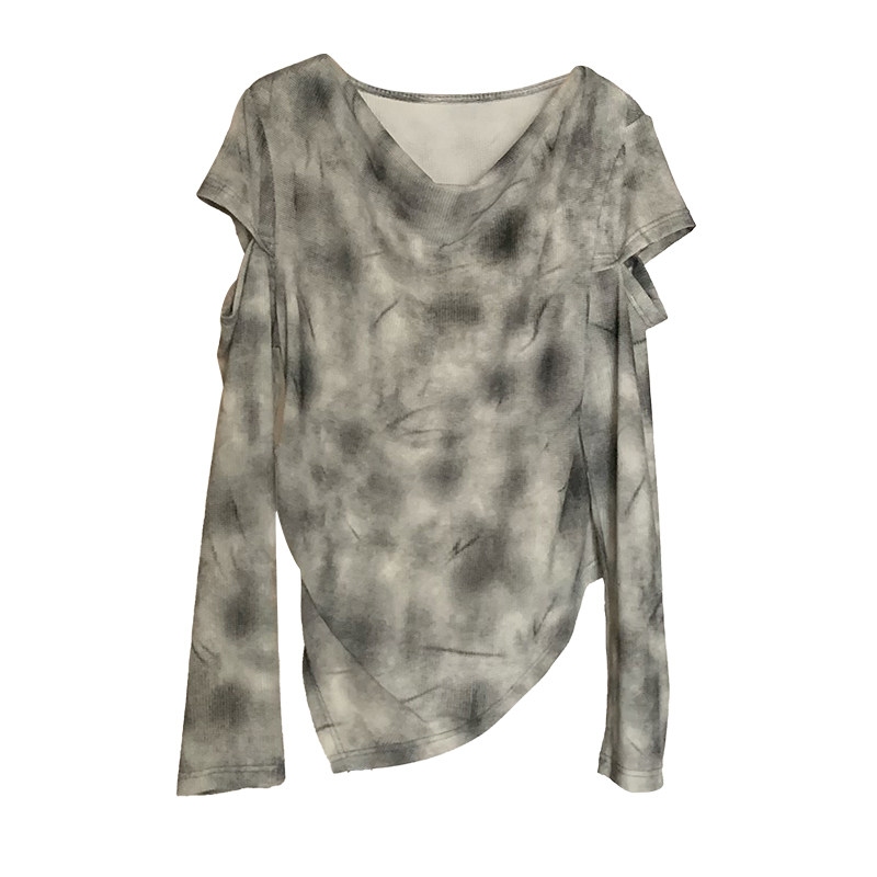 大码女装胖mm扎染不规则长袖上衣