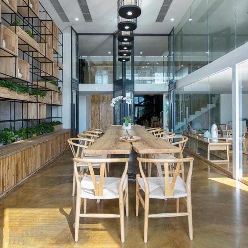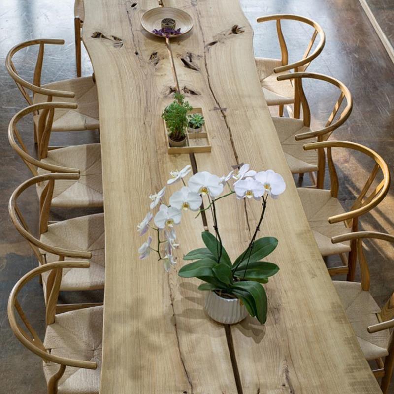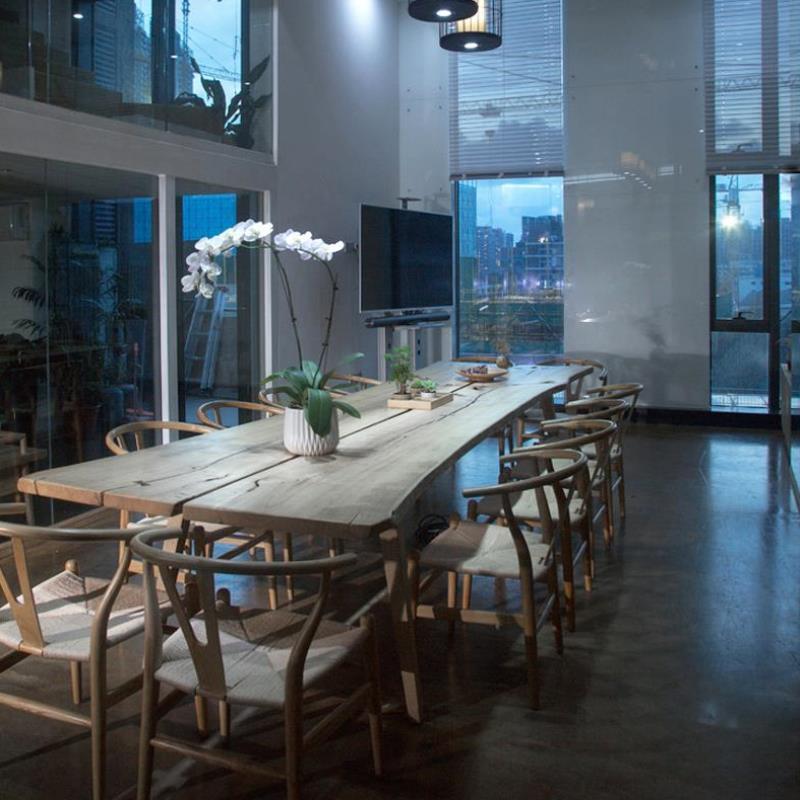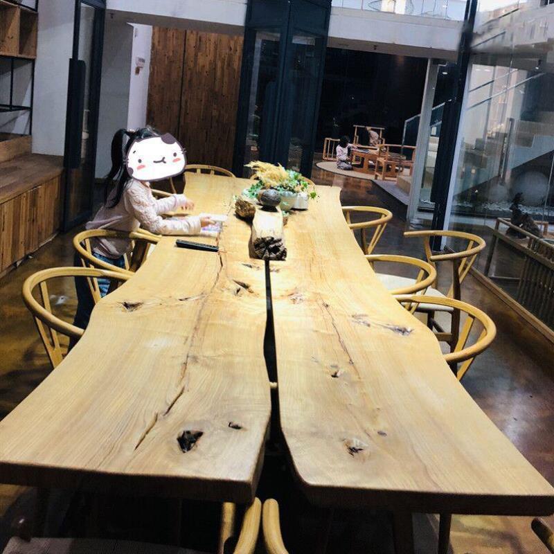 北欧实木长条会议桌简约现代办公桌原木板泡茶桌工作台餐桌椅组合