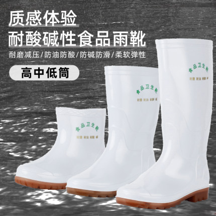 白色雨鞋男士食品厂专用雨靴女士中筒高筒食堂工作水鞋卫生胶套鞋