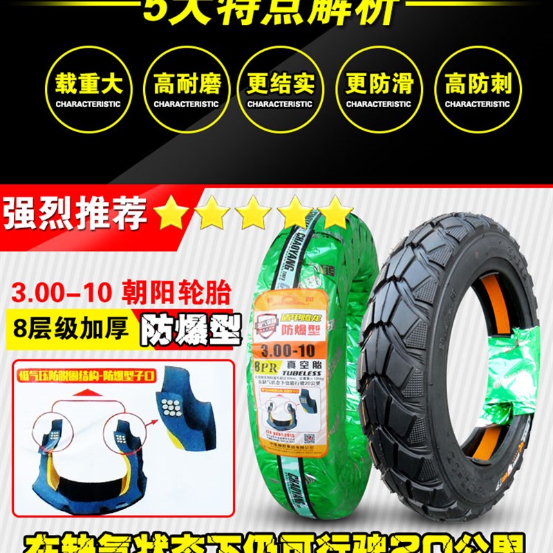 朝阳轮胎3.00-10寸真空胎外胎14X3.2电动车摩托车300一八层防爆胎