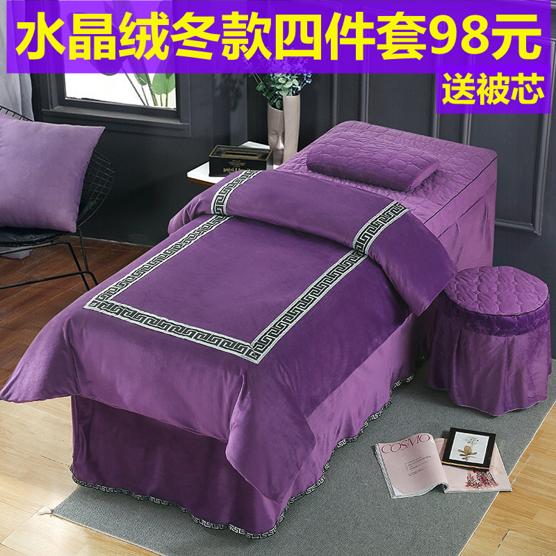 欧式保暖珊瑚绒美容院床罩理疗按摩四件套被单床套水晶绒被罩床单