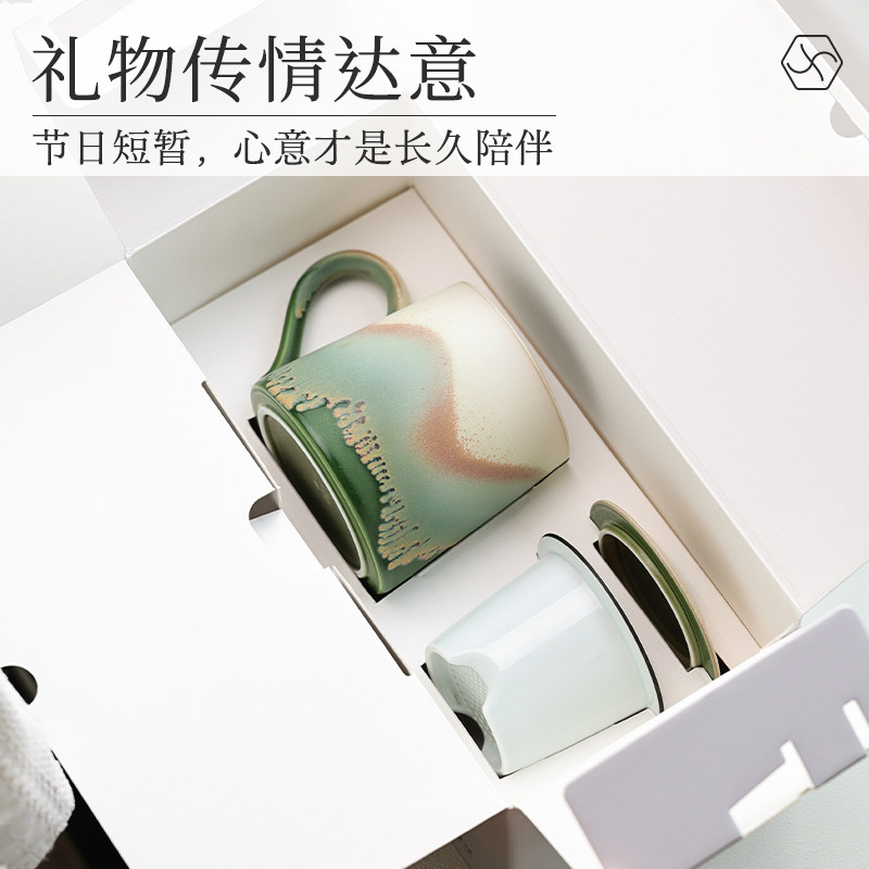 象上【山野绿办公室茶杯】茶水分离马克杯带盖个人专用高档套装