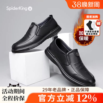 蜘蛛王2025冬季新款男士商务英伦休闲皮鞋真皮加绒棉鞋保暖爸爸鞋