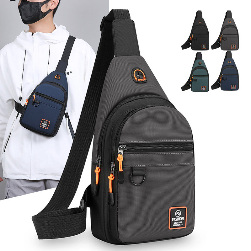男士大容量胸包运动休闲工作通勤胸前包男款帆布单肩小背包斜挎包