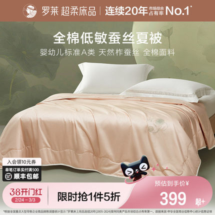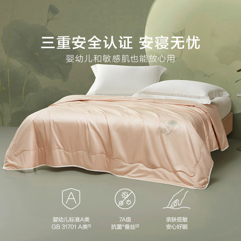 罗莱家纺100%蚕丝被子结婚陪嫁全棉可机洗夏凉被空调被芯单人双人