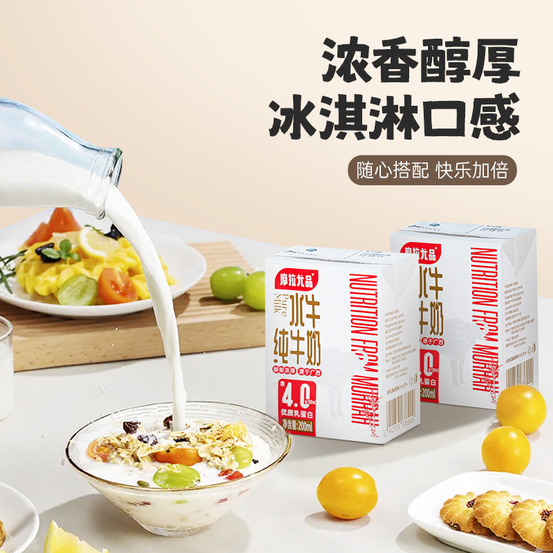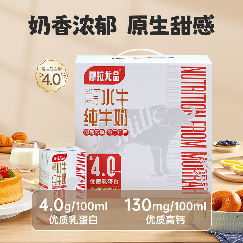 【品鉴装】摩拉尤品水牛纯牛奶200ml*2盒儿童学生营养早餐广西奶
