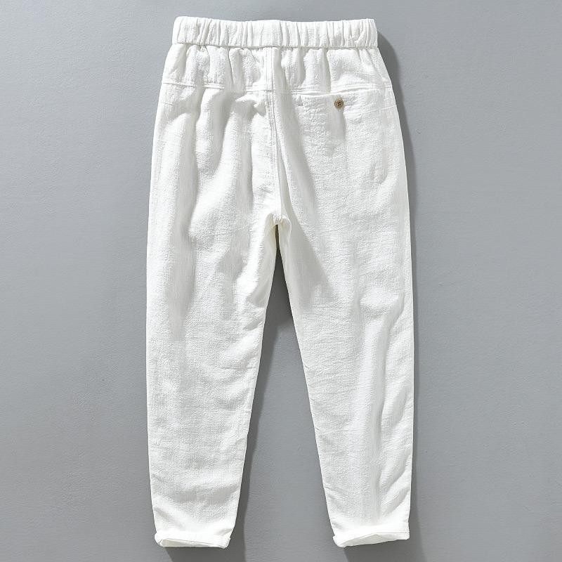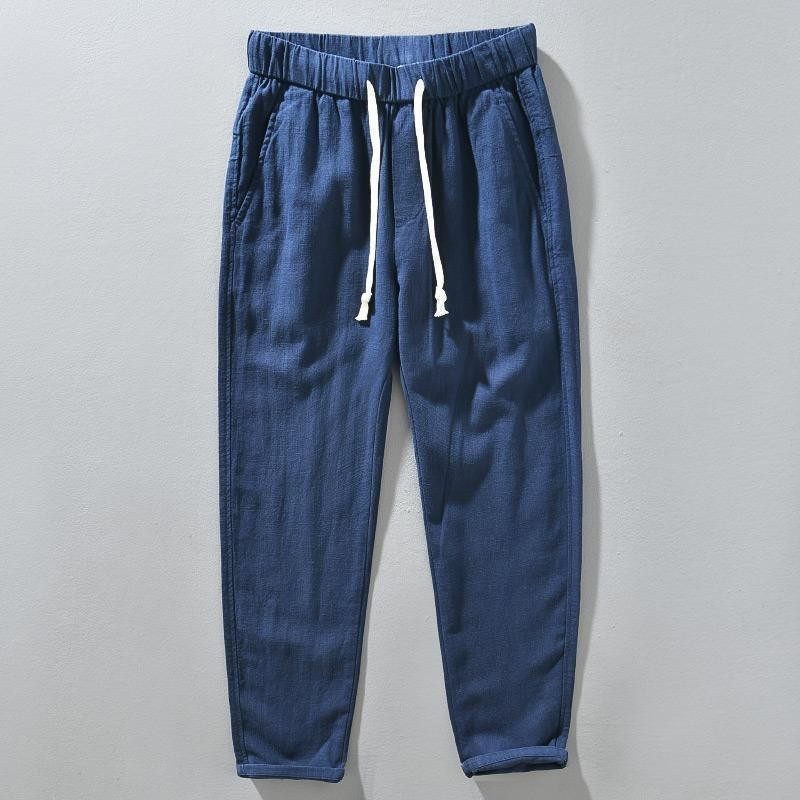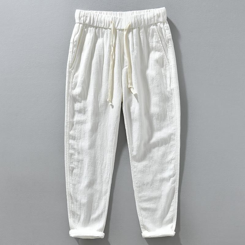 直筒亚麻裤男夏季新款日系复古透气苎麻休闲裤纯色棉麻百搭九分裤