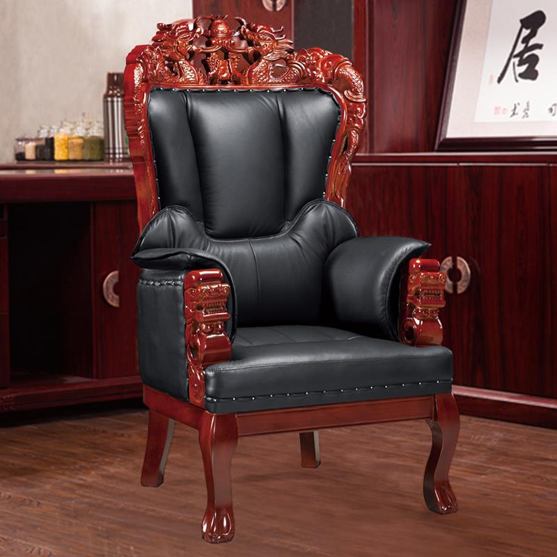 新款好环境真家具工雕霸气老板椅皮办公椅子龙实木大班椅牛皮总裁