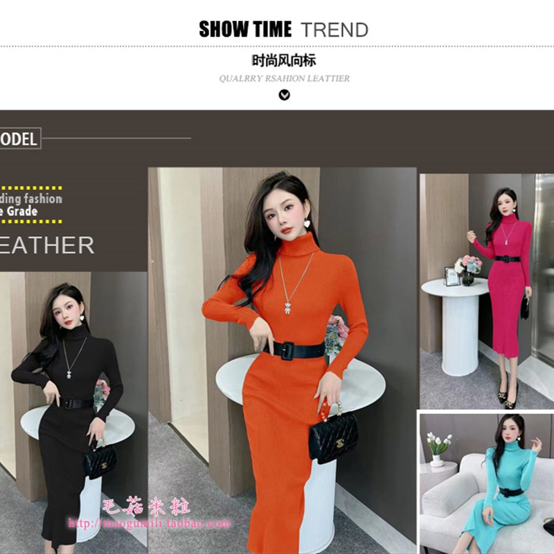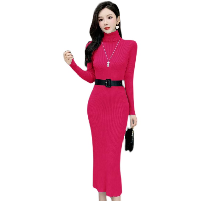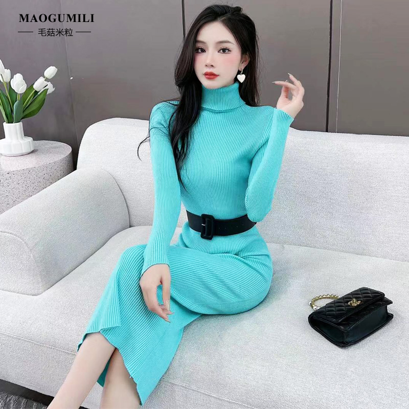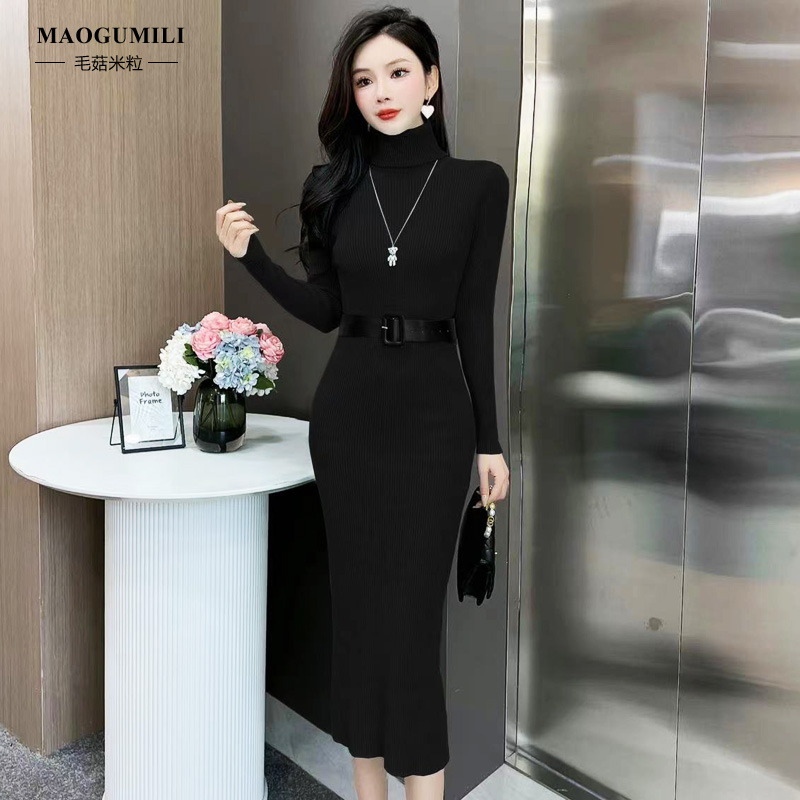 针织连衣裙女秋冬修身高领气质长款包臀配大衣的内搭打底毛衣裙子