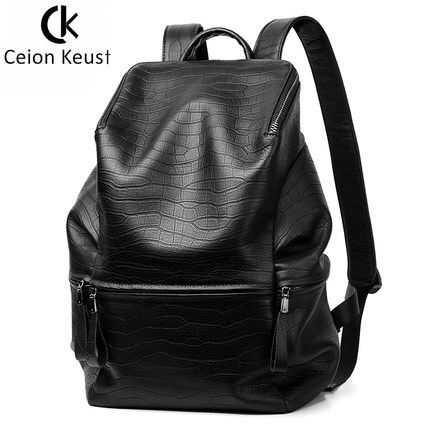 CeionKeust真皮男士双肩包大容量时尚潮流休闲男包电脑包学生书包